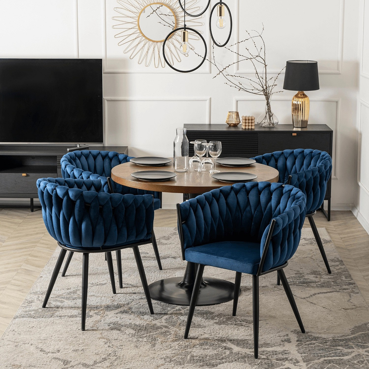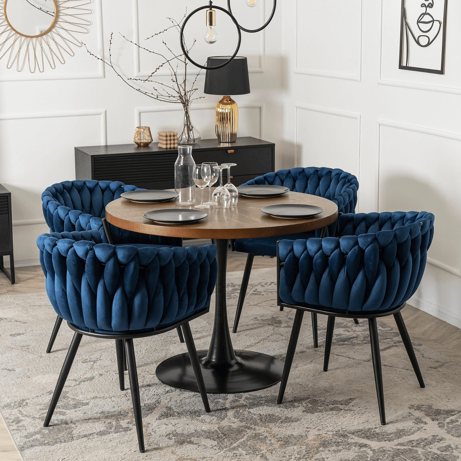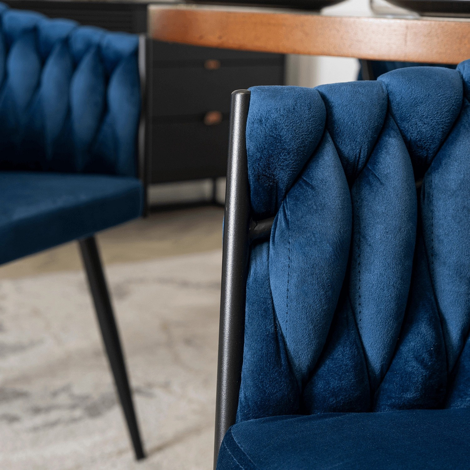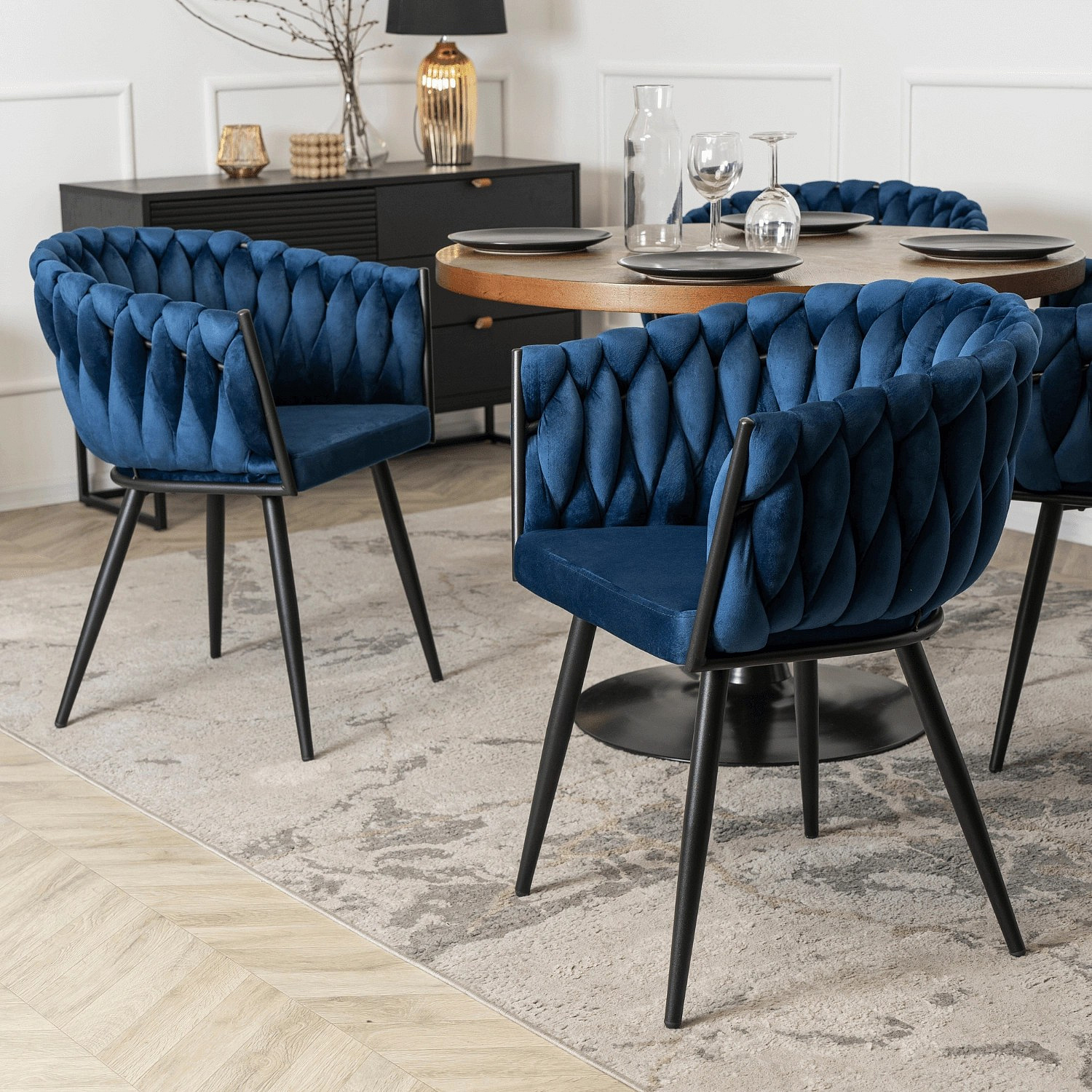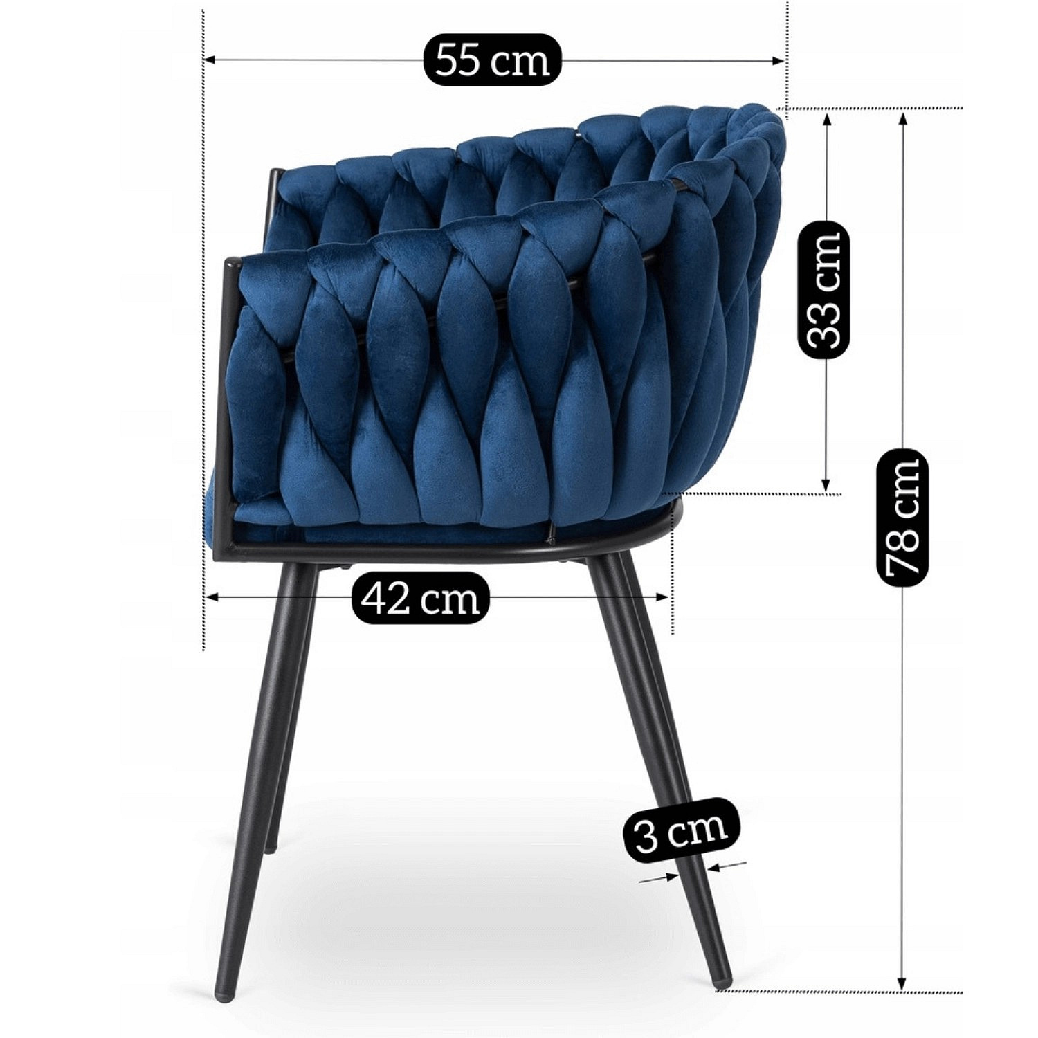 Židle ELENA Modrá Pletená Sametová