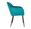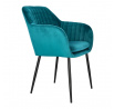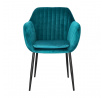 Židle Emilia Velvet je mimořádně efektní kus nábytku, který odkazuje na skandinávský styl. Čalouněné sedadlo má efektní prošívání, které je zdůrazněno sametem v barvě lahvově zelené. Základna byla vyrobena z kovu natřeného na černou barvu. Výška sedáku: 49 cm Šířka sedáku: 36 cm Hloubka sedáku: 39 cm Výška područek: 23 cm
