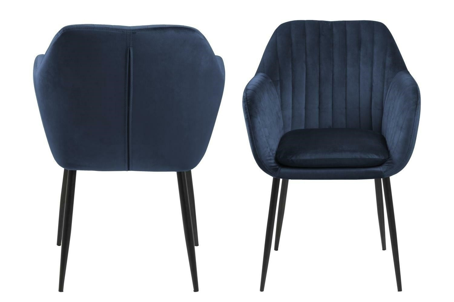 Židle Emilia Velvet je mimořádně efektní kus nábytku, který odkazuje na skandinávský styl. Čalouněné sedadlo má efektní prošívání, které je zdůrazněno sametem v tmavě modré barvě. Základna byla vyrobena z kovu natřeného na černou barvu. Výška sedáku: 49 cm Šířka sedáku: 36 cm Hloubka sedáku: 39 cm Výška područek: 23 cm