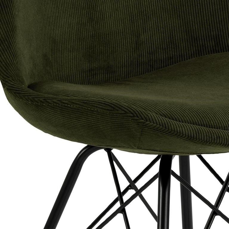 Židle Eris je ideálním řešením pro moderní jídelnu nebo obývací pokoj. Dokonale se osvědčí také v pokoji teenagera, v restauraci nebo v hotelových prostorách. Bylo vyrobeno z polypropylenu čalouněného látkou Wind fabric olive green 180 a kovového podstavce lakovaného práškovou barvou na černo. Židle navzdory své nízké hmotnosti 6,5 kg je velmi stabilní a odolná. Nohy židle mají další jemné vzpěry, které kromě konstrukční funkce slouží také jako ozdoba. Hmotnost židle je 6,5 kg. Maximální zatížení: 120 kg Maximální počet ks. v kartonu: 2 Rozměry kartonu: 57 cm x 51 cm x 65 cm Výška sedadla: 49 cm Šířka sedadla: 48,5 cm Hloubka sedadla: 42 cm
