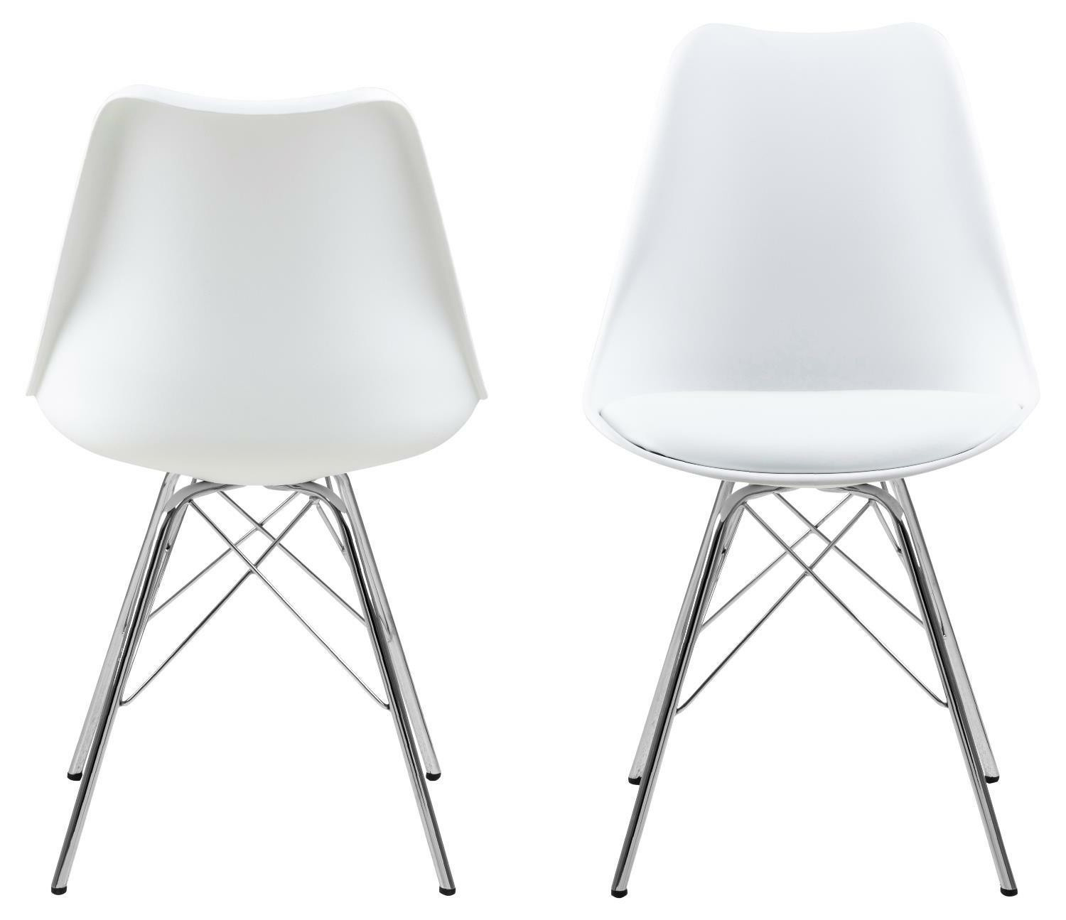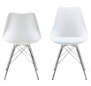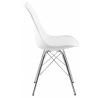Židle Eris PP je skvělým řešením pro moderní jídelnu nebo obývací pokoj. Dokonale se osvědčí také v pokoji teenagera, v restauraci nebo v hotelových prostorách. Bylo vyrobeno z polypropylenu spojeného s ekologickou kůží v bílé barvě. Základ tvoří kovové, chromované nohy v barvě sedadla. Výška sedáku: 49 cm Šířka sedáku: 48,5 cm Hloubka sedáku: 42 cm