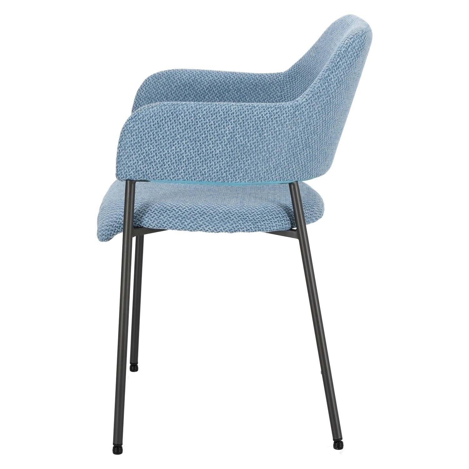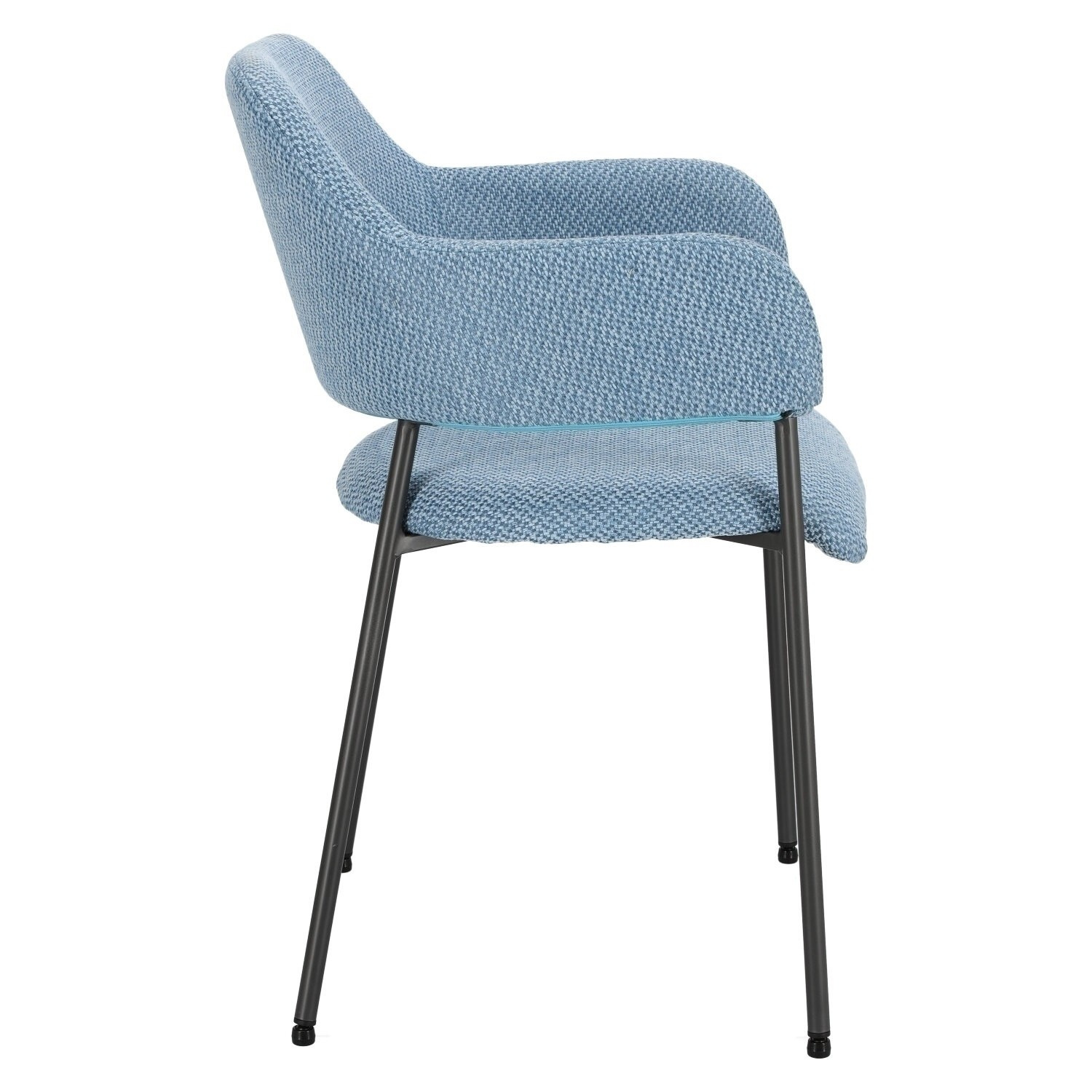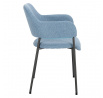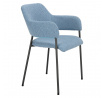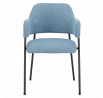 Modernistická židle Gato je moderní a zajímavá židle do jídelny nebo kuchyně. Sedák a opěradlo židle jsou vyplněny měkkou pěnou a potaženy příjemnou na dotek, modrou látkou. Celé je to umístěno na kovové konstrukci v černé barvě, která dodává kompozici modernistický charakter. Koncovky, které jsou zakončením nohou židle, jsou samonivelační a přizpůsobují se povrchu podlahy. Díky tomu se židle nekývá, když např. jednou nohou stojí na koberci nebo nerovné podlaze. Židle Gato se skvěle hodí do každé stylové kuchyně nebo jídelny. Skvěle se uplatní také v restauraci, konferenční místnosti nebo stylové kavárně. Hmotnost 6,5 kg Šířka sedáku: 46 cm Hloubka sedáku: 42 cm Výška područek: 22 cm Rozměry kartonu: 61x79x34 cm Max. množství ks. 2
