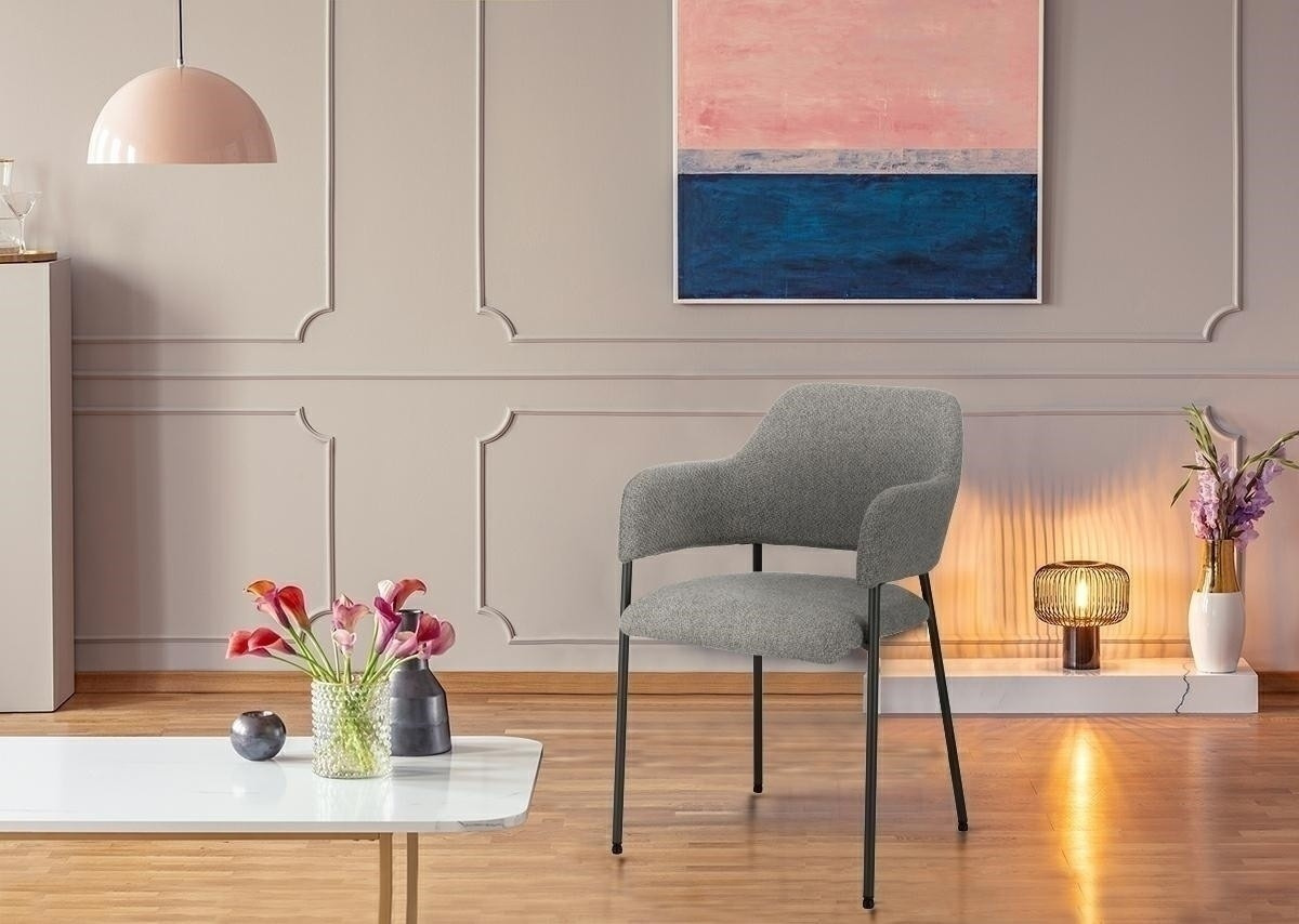 Modernistická židle Gato je moderní a zajímavá židle do jídelny nebo kuchyně. Sedák a opěradlo židle jsou vyplněny měkkou pěnou a potaženy příjemnou na dotek, šedou látkou. Celé je to umístěno na kovové konstrukci v černé barvě, která dodává kompozici modernistický charakter. Koncovky, které jsou zakončením nohou židle, jsou samonivelační a přizpůsobují se povrchu podlahy. Díky tomu se židle nekývá, když např. jednou nohou stojí na koberci nebo nerovné podlaze. Židle Gato se skvěle hodí do každé stylové kuchyně nebo jídelny. Hmotnost 6,5 kg