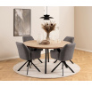Díky minimalistické konstrukci se židle Genda hodí do jídelny ve stylu japandi, boho nebo skandi. Sedák čalouněný zajímavou, hrubě pletenou tkaninou s efektem dvou odstínů v závislosti na tom, jak na nábytek dopadá světlo. Silné lemování na okrajích opěradla, područek a sedáku dodává elegantní vzhled. Moderní černá 4hvězdičková základna s otočným mechanismem doplňuje moderní charakter židle. Podstavec židle lakovaný práškovou barvou na černý mat. Certifikát FSC Vyžaduje montáž. Max. zatížení 110 kg. Šířka sedáku: 44 cm hloubka sedáku: 46 cm Rozměry kartonu: 62x62x57,2 cm. Max. 2 ks v kartonu