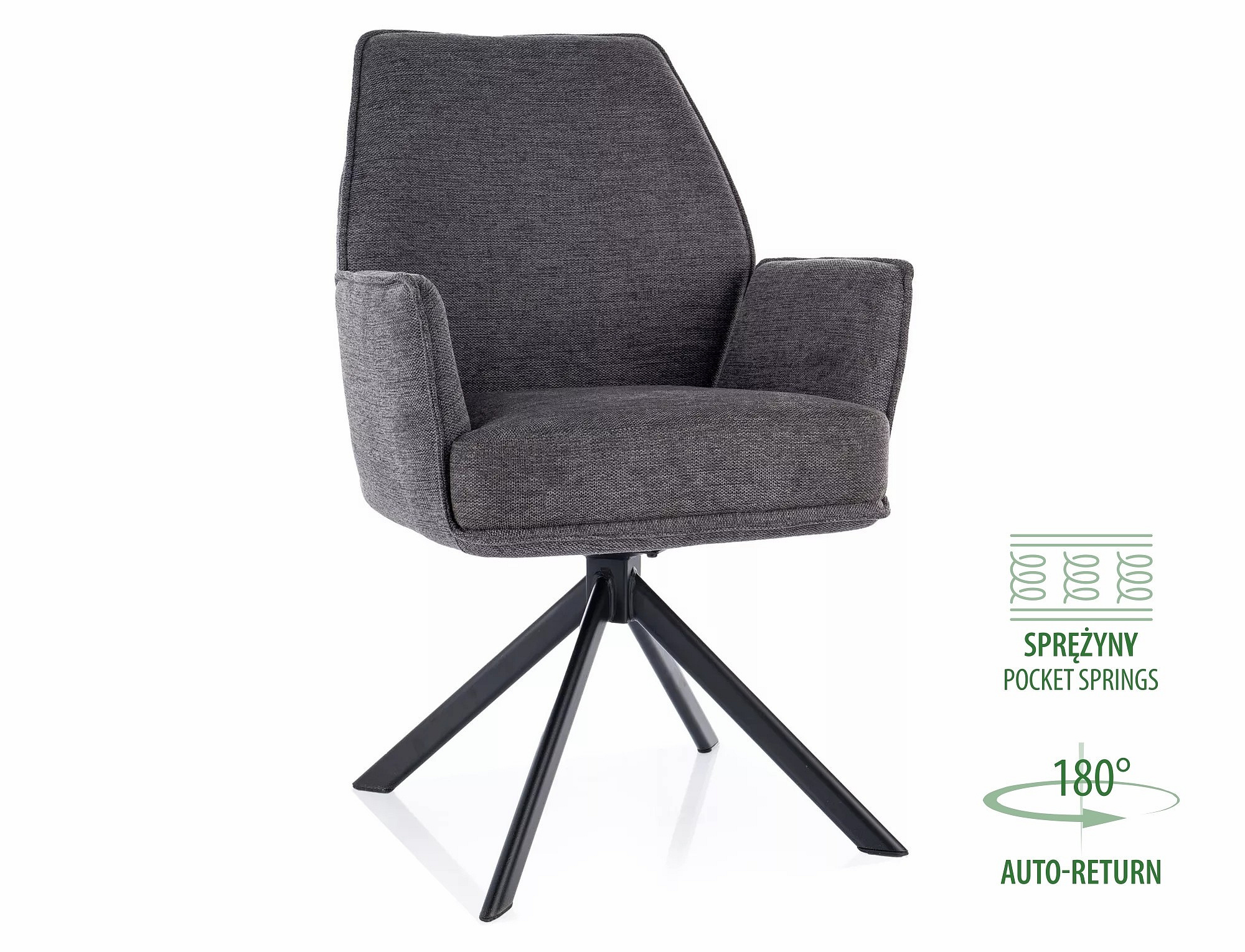 Jídelní otočná židle HUGO BREGO s pružinovým sedákem, Šedá 18/Černá