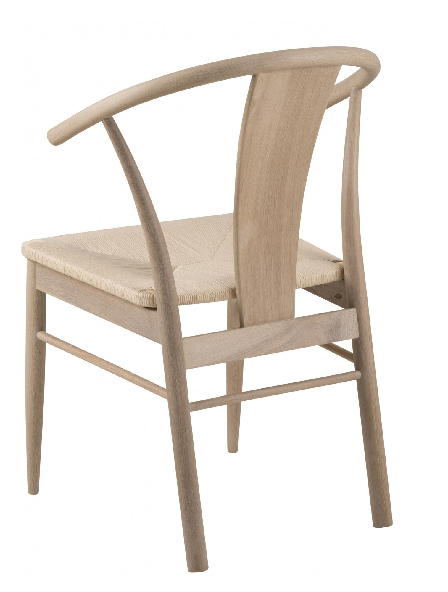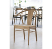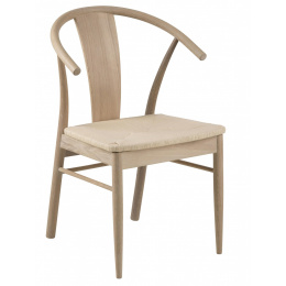 Židle Janik je vyrobena z dubového dřeva v přírodní barvě. Sedák je pokrytý výpletem z papíru v přírodní barvě. Křeslo má také pohodlné područky, které jsou spojeny v jeden celek s opěradlem. Židle stojí na čtyřech nožkách, které se jemně zužují směrem dolů. Židle se ideálně hodí do interiérů ve skandinávském stylu.