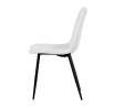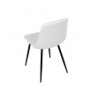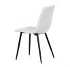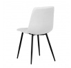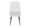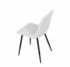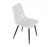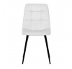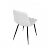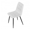 Jídelní židle s označením DCL-X7015 WT2 kombinuje moderní design s praktickým provedením. Sedák i opěradlo jsou potažené bílou sametovou látkou s výrazným designovým prošitím, které dodává židli stylový vzhled a zároveň příjemný dotek. Stabilní kovové nohy v černé barvě zajišťují pevnou a bezpečnou oporu, přičemž jejich povrchová úprava je navržena pro dlouhou životnost a snadnou údržbu. Židle nemá područky ani otočný mechanismus, což ji činí kompaktní a vhodnou do různých typů jídelních prostor. Celková konstrukce je navržena tak, aby poskytovala komfortní posezení s důrazem na estetiku i funkčnost.