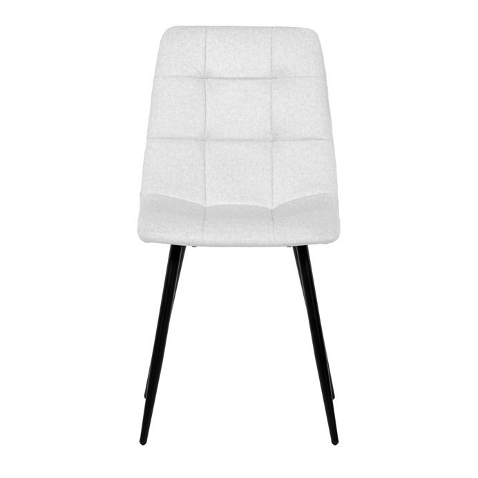 Jídelní židle s označením DCL-X7015 WT2 kombinuje moderní design s praktickým provedením. Sedák i opěradlo jsou potažené bílou sametovou látkou s výrazným designovým prošitím, které dodává židli stylový vzhled a zároveň příjemný dotek. Stabilní kovové nohy v černé barvě zajišťují pevnou a bezpečnou oporu, přičemž jejich povrchová úprava je navržena pro dlouhou životnost a snadnou údržbu. Židle nemá područky ani otočný mechanismus, což ji činí kompaktní a vhodnou do různých typů jídelních prostor. Celková konstrukce je navržena tak, aby poskytovala komfortní posezení s důrazem na estetiku i funkčnost.