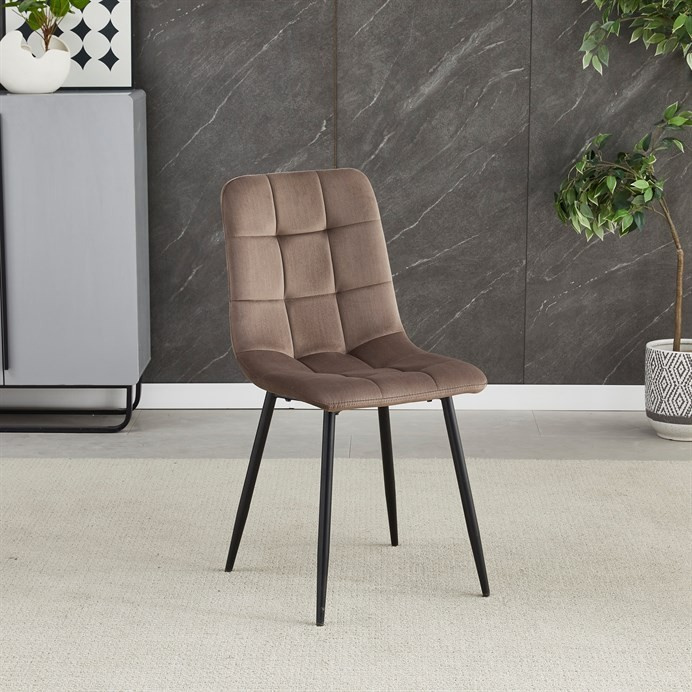 Jídelní židle značky Autronic v elegantní hnědé barvě je ideální volbou pro stylové interiéry. Čalounění ze sametové látky působí luxusně a zajišťuje pohodlí při sezení. Decentní prošívání zdůrazňuje precizní zpracování, zatímco stabilní černé kovové nohy podtrhují minimalistický vzhled s industriálním nádechem. Díky kvalitnímu polstrování z PU pěny je vhodná pro každodenní stolování i delší posezení. Tato židle přináší harmonii mezi funkčností a moderním designem, který oživí každou jídelnu.