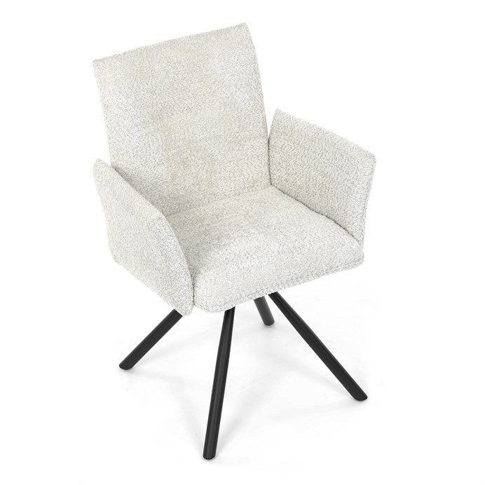 Tato moderní jídelní židle značky Autronic v industriálním stylu kombinuje pohodlí s funkčností. Otočná židle s robustní kovovou podnoží je vybavena pohodlnými područkami a látkou Bouclé, která zajišťuje příjemný a stylový vzhled. Polstrování z PU pěny nabízí měkké sezení, zatímco otočný mechanismus L90°/P90° s funkcí automatického vracení sedáku do základní polohy umožňuje snadné otáčení pro maximální flexibilitu. Černá kovová centrální podnož dodává židli stabilitu a moderní vzhled. Tato židle je ideální pro elegantní jídelny, kde se kombinuje komfort s moderním designem.