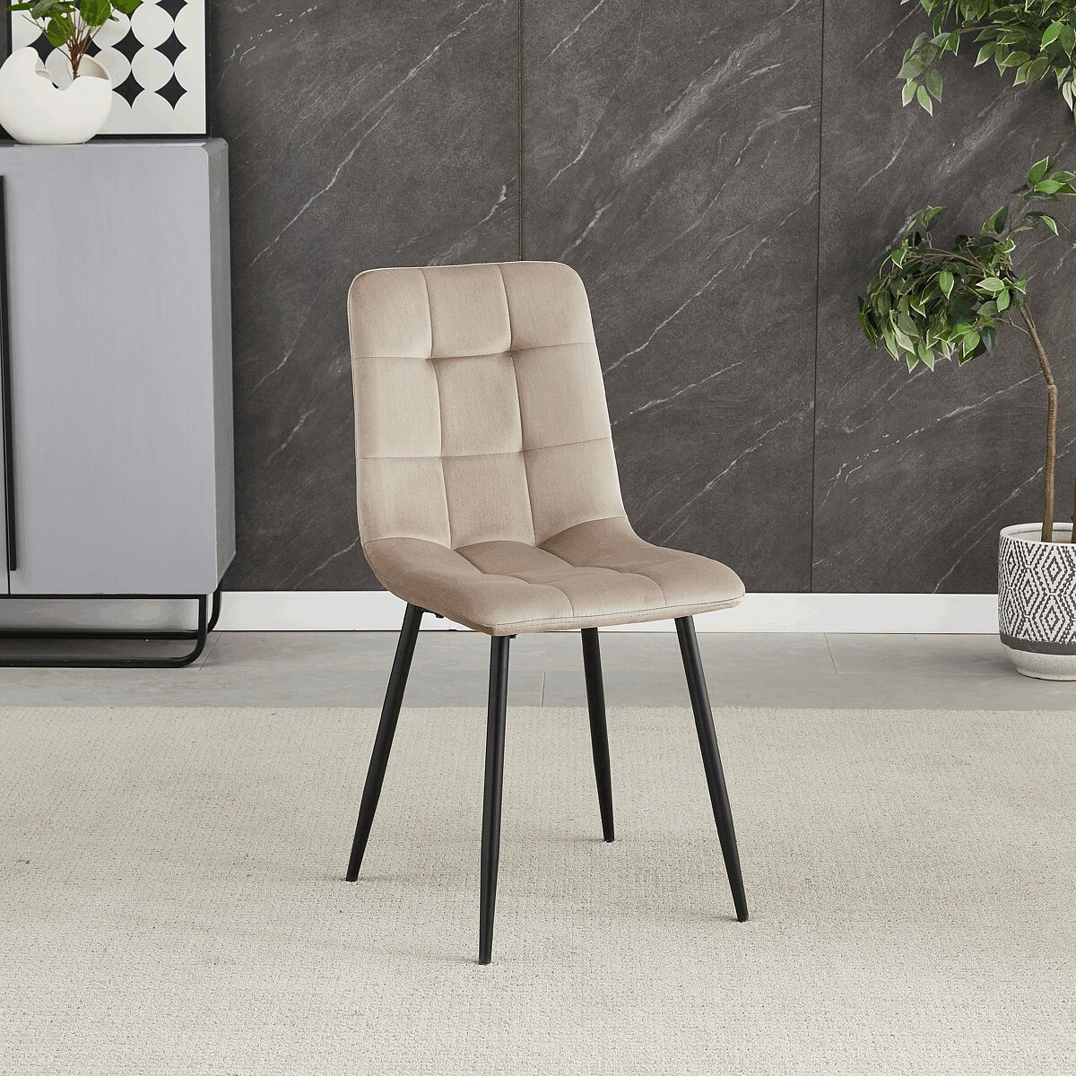 Jídelní židle značky Autronic v elegantní krémové barvě je ideální volbou pro stylové interiéry. Čalounění ze sametové látky působí luxusně a zajišťuje pohodlí při sezení. Decentní prošívání zdůrazňuje precizní zpracování, zatímco stabilní černé kovové nohy podtrhují minimalistický vzhled s industriálním nádechem. Díky kvalitnímu polstrování z PU pěny je vhodná pro každodenní stolování i delší posezení. Tato židle přináší harmonii mezi funkčností a moderním designem, který oživí každou jídelnu.