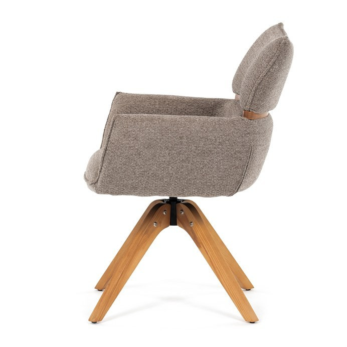 Jídelní židle Autronic v krémové barvě je skvělou volbou pro elegantní a pohodlné sezení. Její čalounění z hladké látky v kombinaci s měkkou PU pěnou poskytuje maximální komfort. Stabilitu zajišťují masivní dřevěné nohy v přírodním odstínu, který podtrhuje skandinávský styl. Díky otočné funkci o 360° s vratným mechanismem nabízí flexibilitu při sezení. Područky a dekorativní masivní prvky dodávají židli sofistikovaný vzhled. Ideální doplněk do moderní jídelny, který spojuje zábavu a praktičnost.