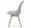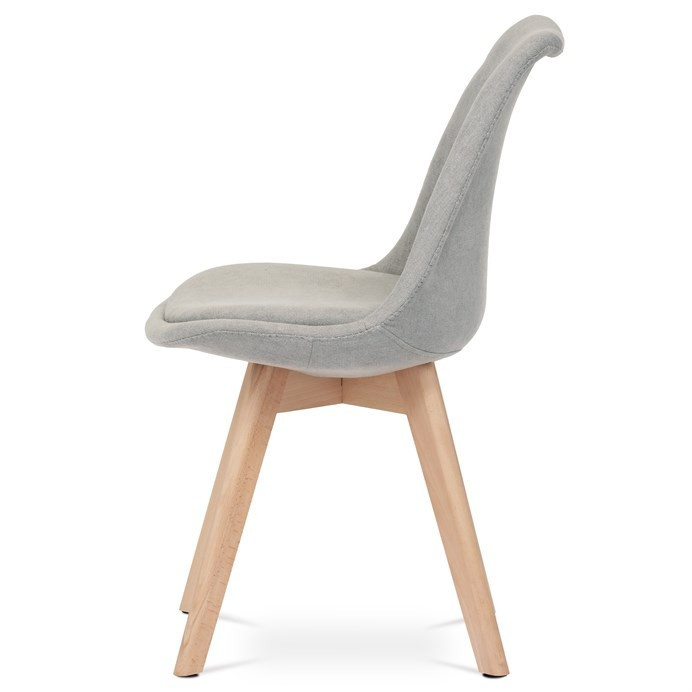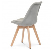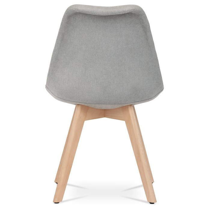 Jídelní židle s tvarovaným čalouněným korpusem v lanýžové barvě, vybavená pohodlným polstrovaným sedákem, který ladí s opěrkou. Nohy jsou vyrobeny z bukového masivu v přírodním odstínu, dodávající židli stabilitu a estetický kontrast. Židle je navržena s ohledem na pohodlí i styl, což ji činí ideální volbou pro moderní interiéry. Plastové kluzáky na nohách zajišťují ochranu podlahové krytiny před poškozením. Díky svému elegantnímu skandinávskému designu je vhodná do kuchyní, pracoven i obývacích pokojů.