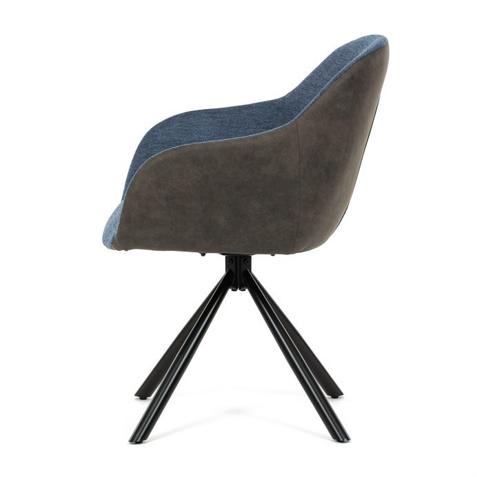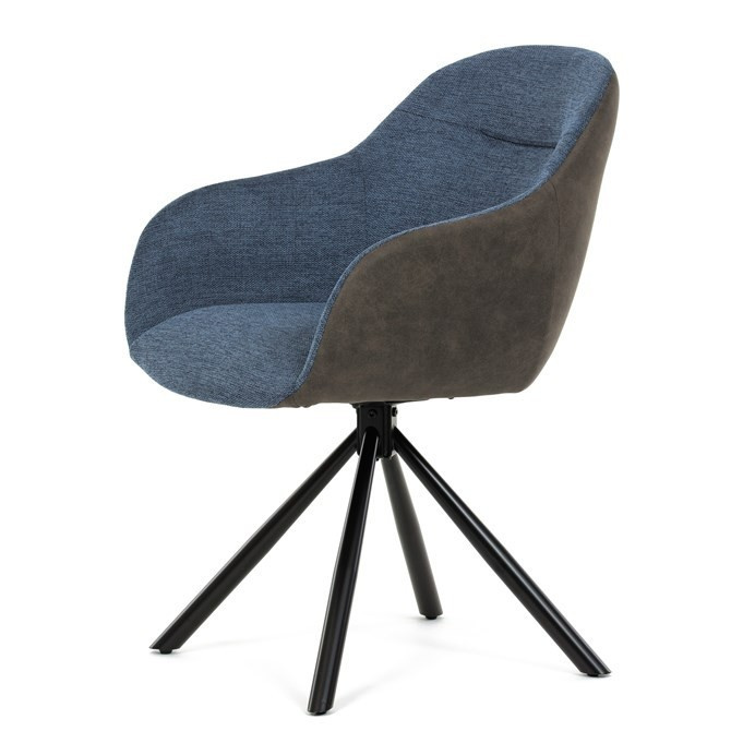 Modrá čalouněná židle značky Autronic vyniká kombinací barev a potahových materiálů na sedáku & opěradle a bocích. Židle dodává interiéru šmrnc a originalitu. Odolné látkové čalounění slibuje pohodlí a dlouhou životnost. Kovové nohy zajišťují stabilitu a moderní vzhled. Díky otočné funkci L90°/P90° s vratným mechanismem snadno přizpůsobíte směr sezení svým potřebám. Područky poskytují extra komfort při delším sezení, ideální pro pracovny nebo obývací pokoje.