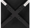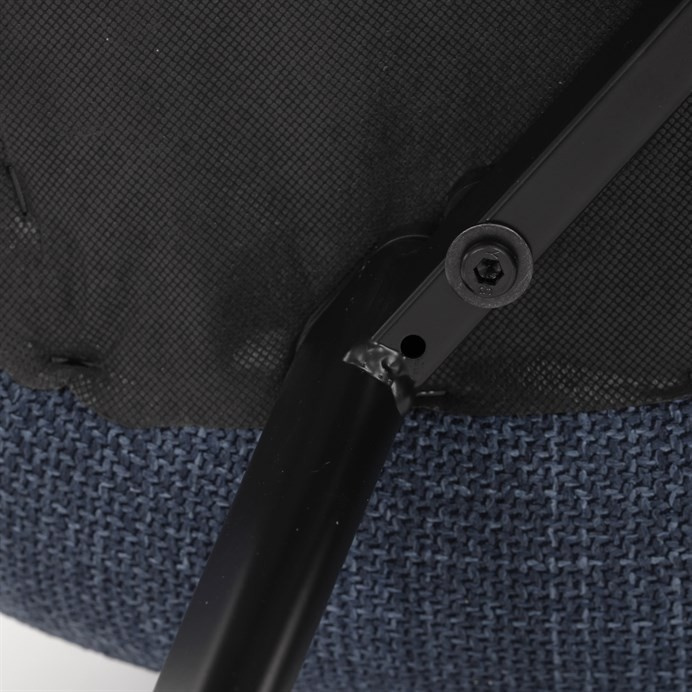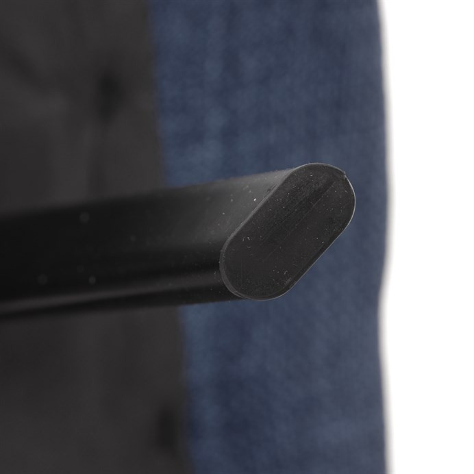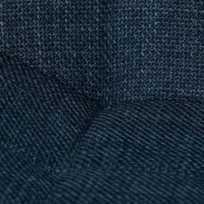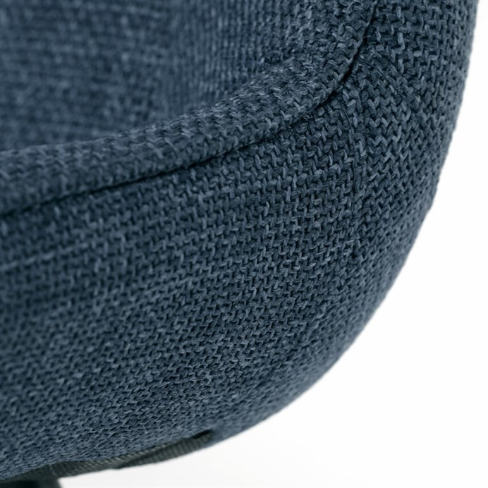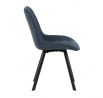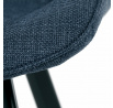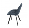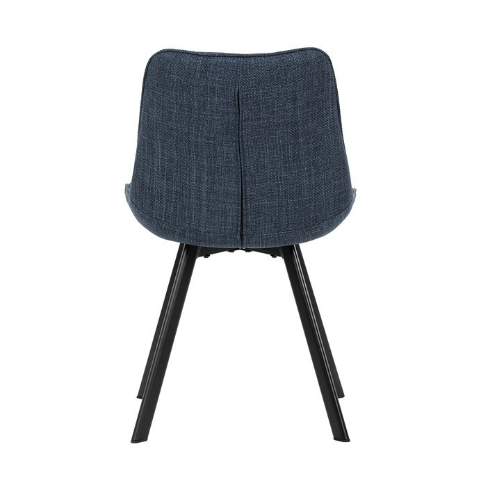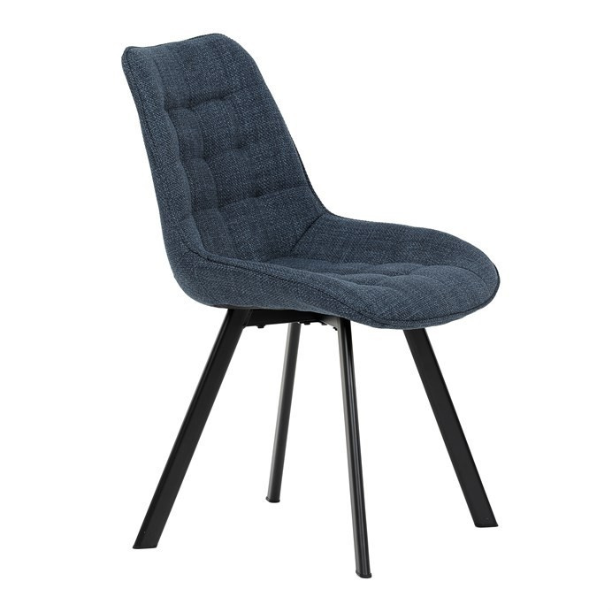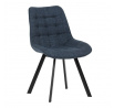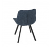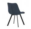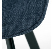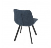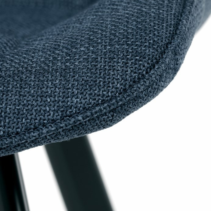 Židle je vyrobena s důrazem na detail. Je čalouněna kvalitní modrou látkou, která je měkká na dotek a odolná proti opotřebení. Ergonomický tvar a polstrování zajišťují komfort i při delším sezení. Židle má 4 kovové nohy s černým povrchem, které poskytují stabilitu a trvanlivost. Nohy jsou mírně skloněné pro lepší rovnováhu a moderní vzhled.