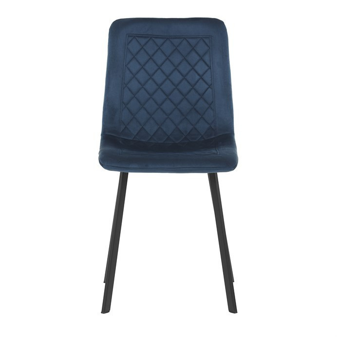 Jídelní židle s označením DCL-973 BLUE4 nabízí pohodlné sezení díky čalounění z modré sametové látky, která je příjemná na dotek a dodává židli sofistikovaný vzhled. Sedák i opěradlo jsou zdobeny designovým prošitím v kosočtverečném vzoru, které podtrhuje moderní styl židle. Stabilní podnož je vyrobena z černě matného kovu, což zajišťuje pevnost a dlouhou životnost. Židle nemá područky ani otočný mechanismus, což ji činí vhodnou pro jídelní prostory s omezeným prostorem. Díky svým rozměrům a konstrukci je určena pro běžné denní používání v domácnostech i komerčních provozech.