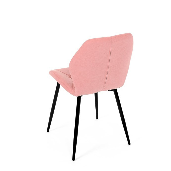 Židle je čalouněná kvalitní látkou, která je měkká na dotek a zároveň odolná proti opotřebení. Ergonomicky tvarované sedadlo a opěradlo s dekorativním prošíváním poskytují vysoký komfort i při delším sezení. Židle stojí na pevných kovových nohách v černém provedení, které zajišťují stabilitu a dlouhou životnost. Nohy jsou elegantně zkosené, což dodává židli moderní vzhled a zajišťuje pevnou stabilitu.