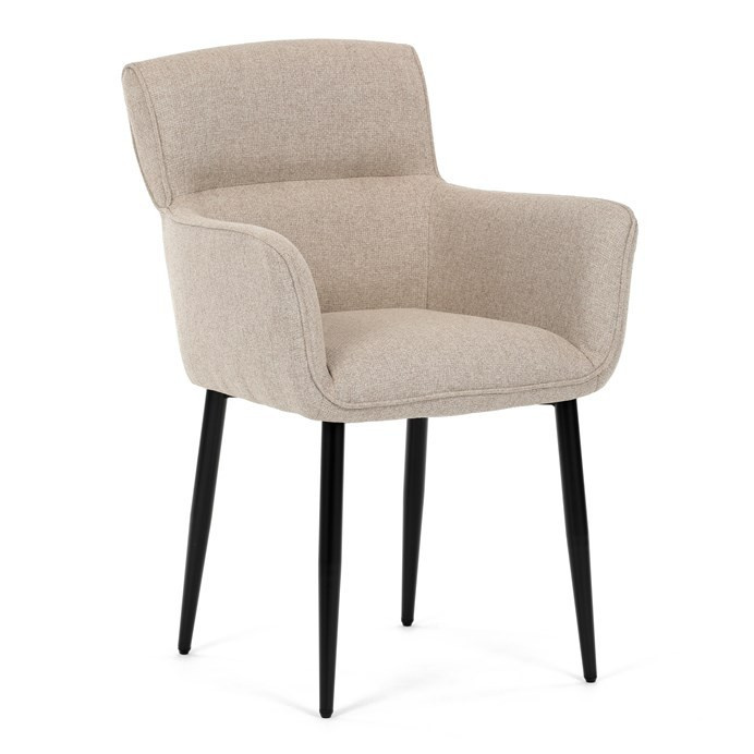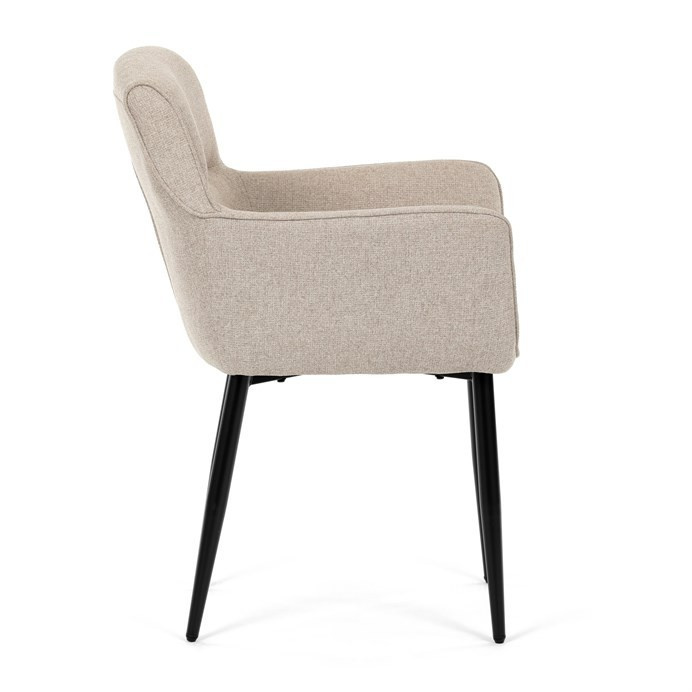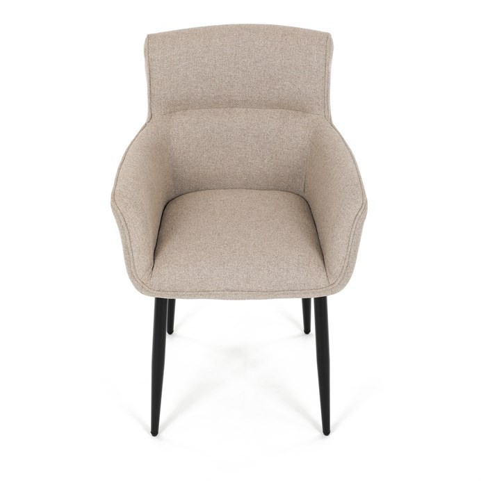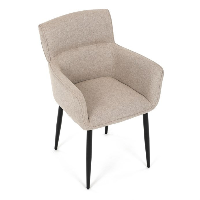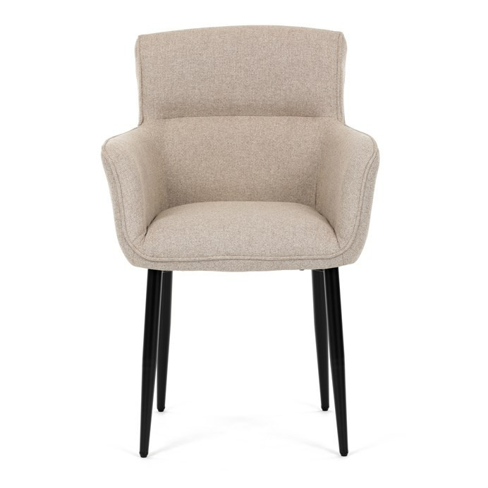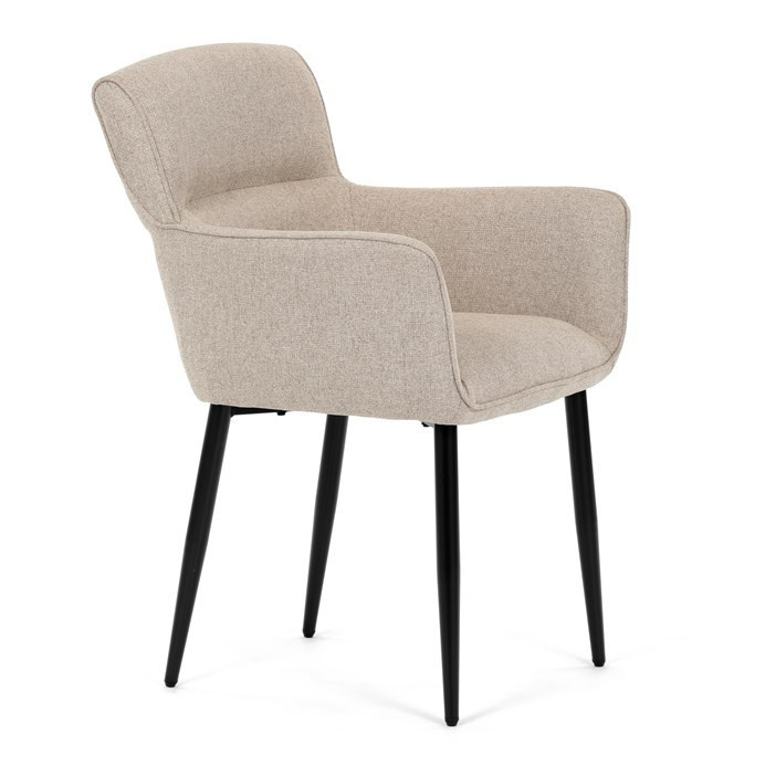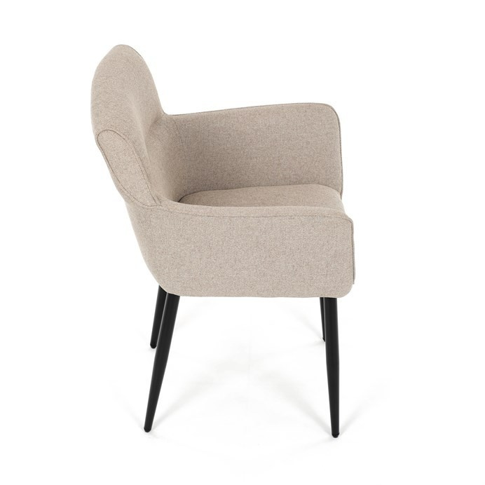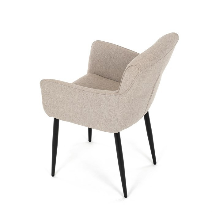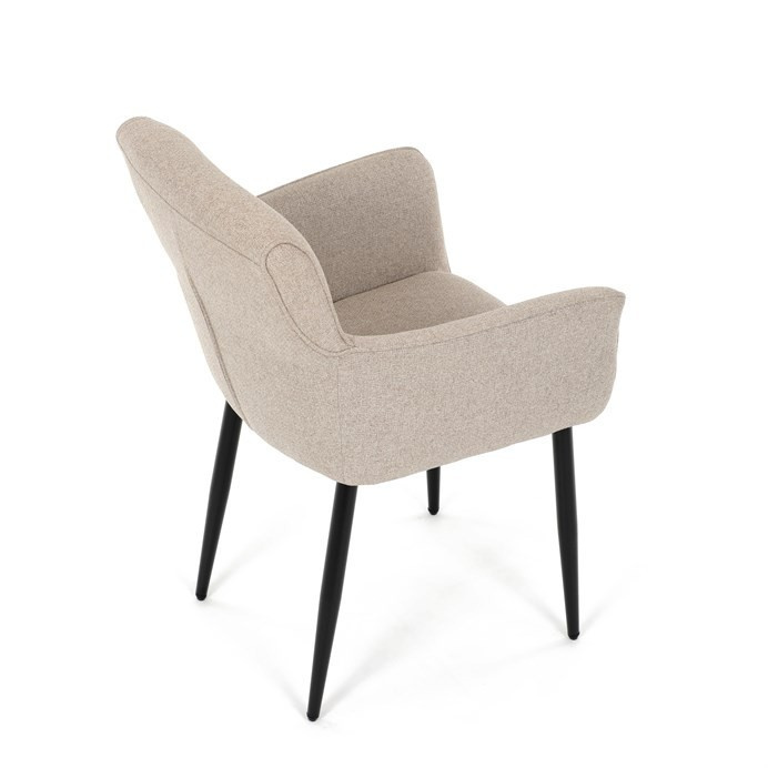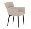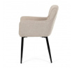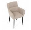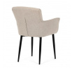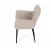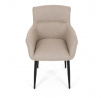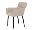 Moderní jídelní židle značky Autronic nabízí elegantní vzhled a vysoký komfort. Béžové čalounění z látky, která se snadno čistí, je ideální pro každodenní používání a zajišťuje praktickou údržbu. Pohodlné područky a měkká PU pěna ve výplni poskytují příjemné sezení. Stabilní konstrukce s černými kovovými nohami působí stylově a zajišťuje pevnost. Tato židle je skvělou volbou pro váš jídelní prostor, kde díky svému jednoduchému a funkčnímu designu perfektně zapadne do jakéhokoliv interiéru.