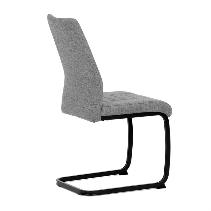 Židle je čalouněná jemnou šedou látkou, která je měkká na dotek a odolná proti opotřebení. Ergonomický tvar a polstrované sedadlo spolu s pohupovou podnoží v černé barvě zajišťují díky lehkému pružení komfort při sezení. Ozdobné prošívání na opěradle dodává židli elegantní vzhled.