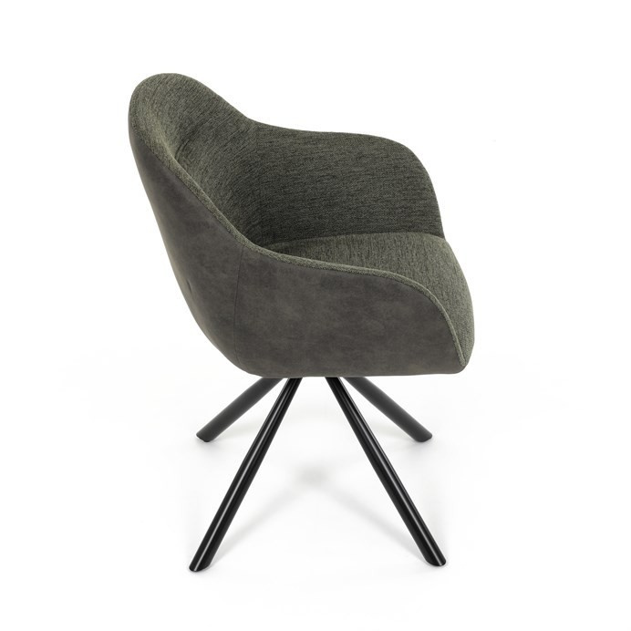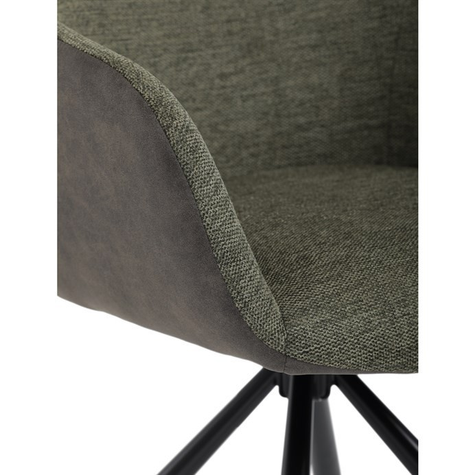 Zelená čalouněná židle značky Autronic vyniká kombinací barev a potahových materiálů na sedáku & opěradle a bocích. Židle dodává interiéru šmrnc a originalitu. Odolné látkové čalounění slibuje pohodlí a dlouhou životnost. Kovové nohy zajišťují stabilitu a moderní vzhled. Díky otočné funkci L90°/P90° s vratným mechanismem snadno přizpůsobíte směr sezení svým potřebám. Područky poskytují extra komfort při delším sezení, ideální pro pracovny nebo obývací pokoje.