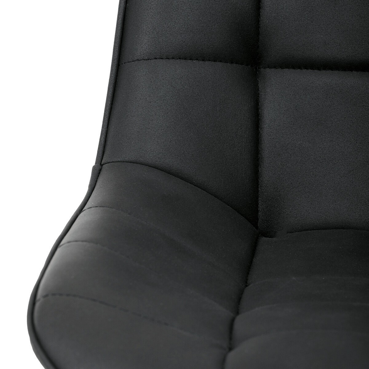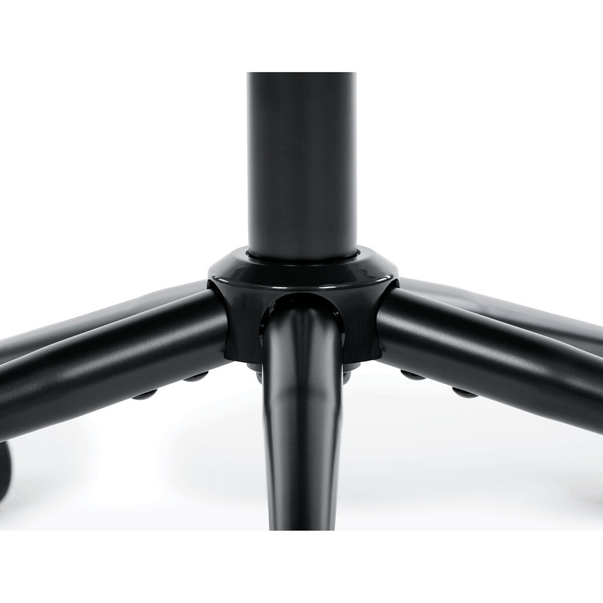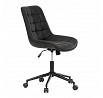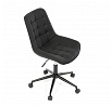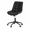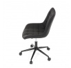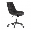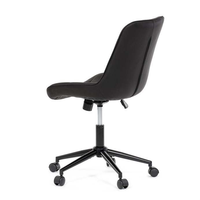 Kancelářská židle s černým potahem v dekoru broušené kůže nabízí moderní vzhled a komfortní sezení. Sedák i opěradlo jsou čalouněné kvalitní látkou, která je příjemná na dotek a snadno se udržuje. Pevný kovový kříž zajišťuje stabilitu a odolnost, zatímco houpací mechanika umožňuje plynulé naklápění pro uvolnění během práce. Výškově nastavitelná sedací plocha umožňuje přizpůsobení výšky podle individuálních potřeb uživatele. Absence područek a bederní opěrky podtrhuje minimalistický design vhodný do různých pracovních prostor.