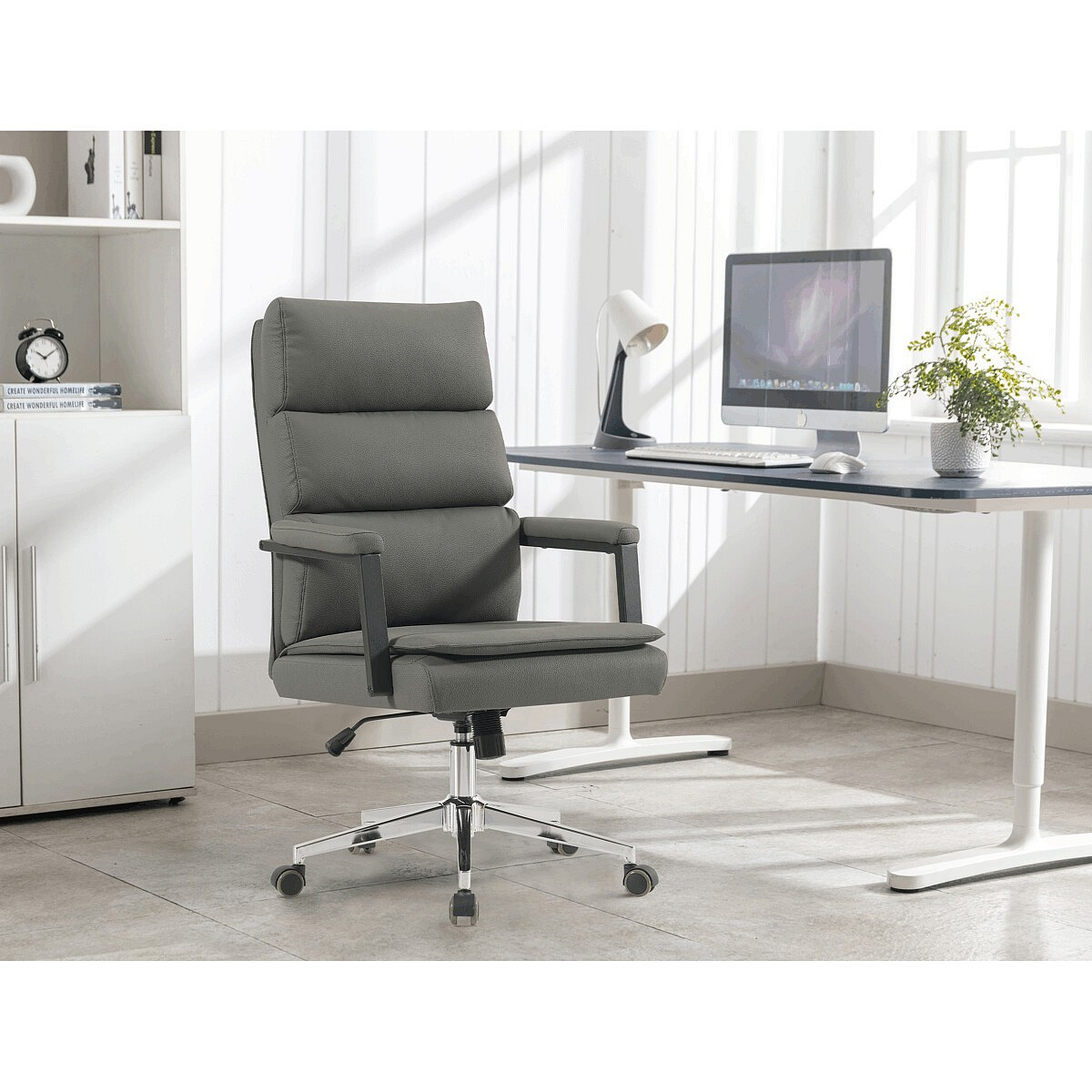Kancelářské křeslo značky Autronic v moderním šedém provedení je dokonalou kombinací elegance a funkčnosti. Potah z strukturované ekokůže působí luxusně a snadno se udržuje, což oceníte při každodenním používání. Čalouněné područky a dvojitý sedák zajišťují vysoký komfort při práci. Stabilitu zaručuje chromovaný kříž, který je navíc odolný proti opotřebení. Houpací mechanismus přináší možnost relaxace během pracovního dne. Tato židle se stane stylovým a praktickým doplňkem vaší kanceláře nebo domácí pracovny.