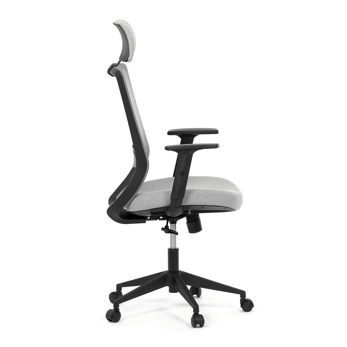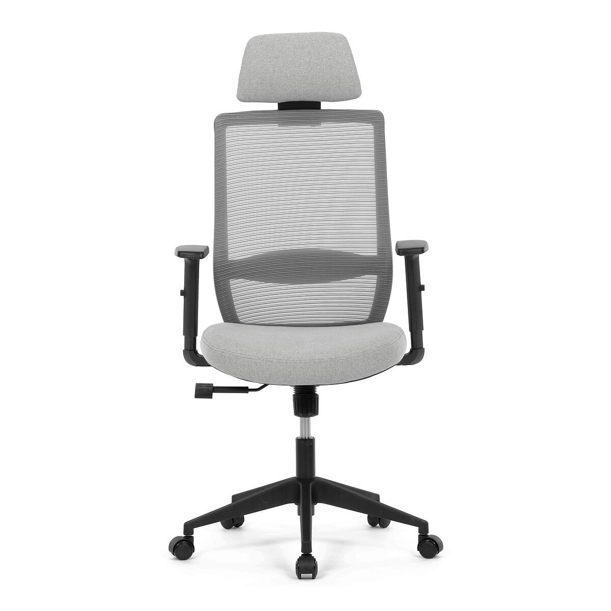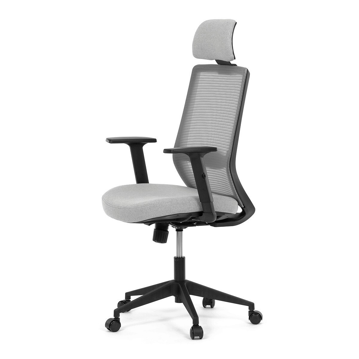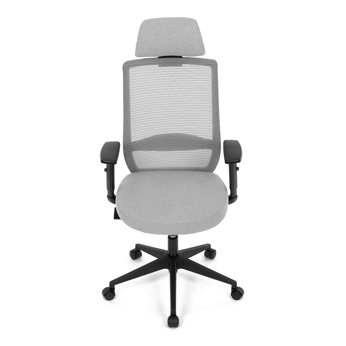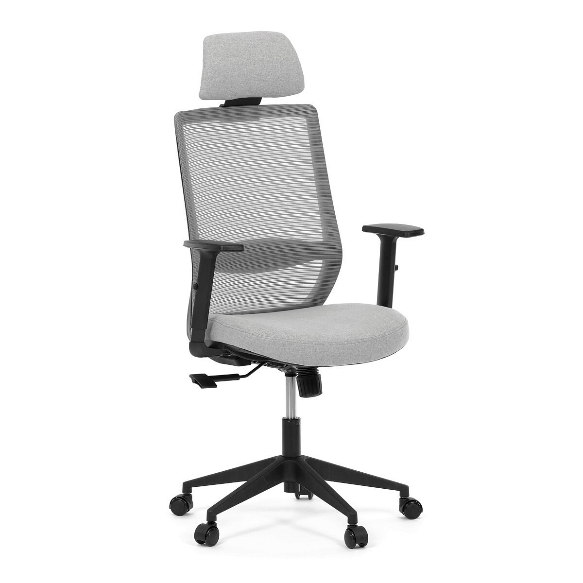 Kancelářská židle s označením KA-V3329 GREY kombinuje moderní šedou MESH síťovinu na opěradle s příjemnou šedou látkou na sedáku, což zajišťuje optimální prodyšnost i komfort během dlouhého sezení. Plastový kříž poskytuje stabilní základnu, která je zároveň lehká a snadno udržovatelná. Synchronní mechanismus umožňuje plynulé nastavení opěradla v závislosti na pohybu těla, čímž podporuje ergonomické držení těla. Výškově nastavitelná bederní opěrka a opěrka hlavy přispívají k individuálnímu přizpůsobení a lepší podpoře páteře. Jednosměrně nastavitelné 1D područky doplňují funkčnost židle, zatímco kolečka jsou vhodná pro tvrdé povrchy, což zajišťuje snadnou mobilitu bez poškození podlahy.