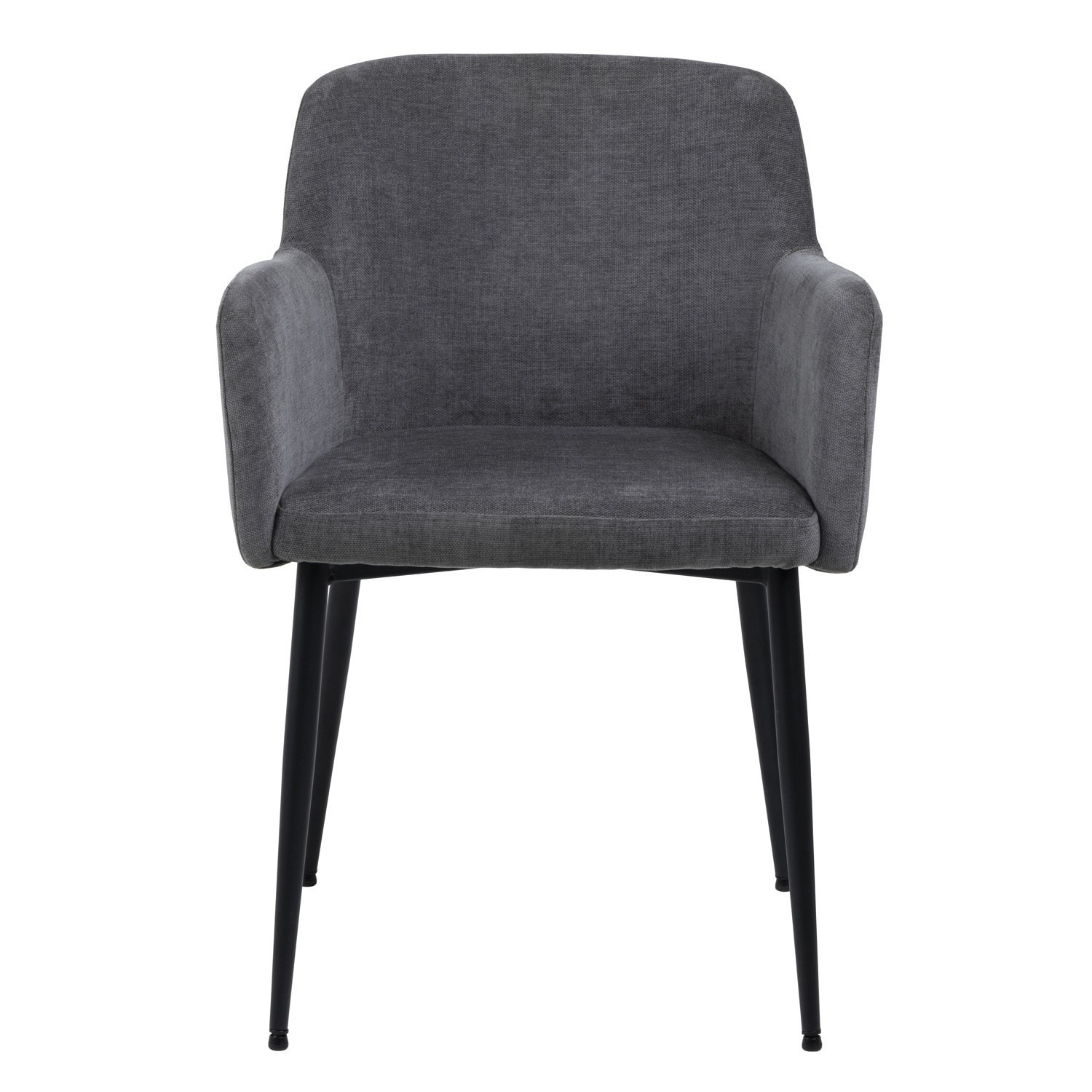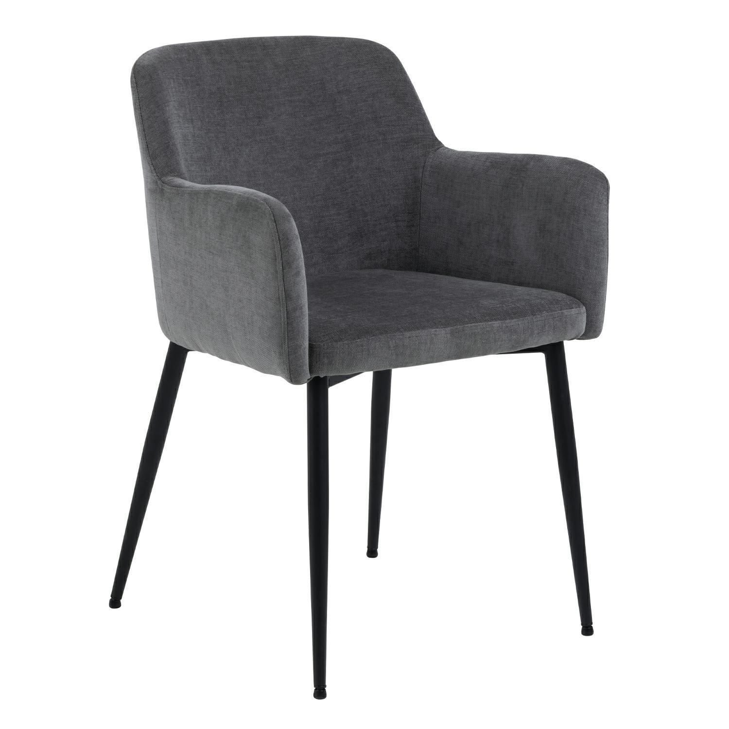 Židle Karen je jednoduchý, a přitom velmi pohodlný nábytek ideální do jídelny, konferenční místnosti nebo obývacího pokoje. Pozornost upoutává kbelíkový tvar opěradla spojeného s područkami a sedákem. Výplň židle tvoří polyuretanová pěna čalouněná látkou Danny fabric dark grey 18. Nohy židle jsou vyrobeny z kovu lakovaného práškovou barvou na černo. Zespodu byly opatřeny krytkami proti poškození podlahy. Počet kartonů: 1 Rozměry kartonů: 74,5x72,4x54 cm Hmotnost kartonů: 8 kg Výška opěradla: 32,5 cm Šířka sedáku: 45 cm Hloubka sedáku: 44 cm Výška područky od podlahy: 66 cm Šířka područky: 4,8 cm Hloubka područky: 44 cm Výška područky: 24 cm