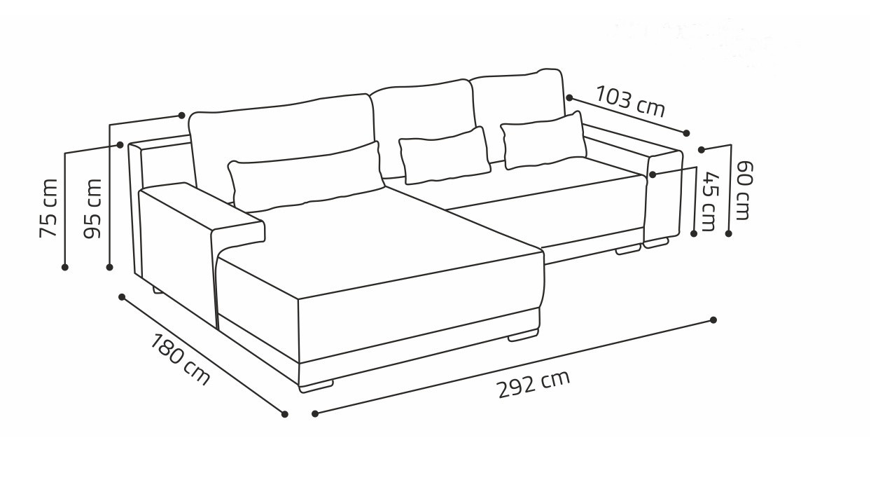 Sedací souprava Lacom MAX výborně zapadne do moderního i klasického interiéru. Její velkou předností je pohodlí, praktičnost a univerzální použití. Tzn. že si ji můžete podle potřeby sestavit jako levou nebo pravou, což je výhoda při zařizování obývacího pokoje. Nemusíte přemýšlet do jakého rohu postavíte sedací soupravu, jednoduše ji podle potřeby přizpůsobíte. Sedací souprava je rozkládací a může tak sloužit k občasnému přespání Vaší návštěvy. Samozřejmostí je i praktický úložný prostor, který můžete využít např. na lůžkoviny. Sedací souprava je potažena kvalitní látkou a nabízíme ji v několika trendy odstínech. Výplň sedáků tvoří kombinace pružin s kvalitní PUR pěnou, což zajišťuje velmi pohodlné sezení. Součástí sedací soupravy jsou tři velké opěrné a tři malé dekorační polštáře. Vyobrazené doplňky a dekorace nejsou v ceně.
