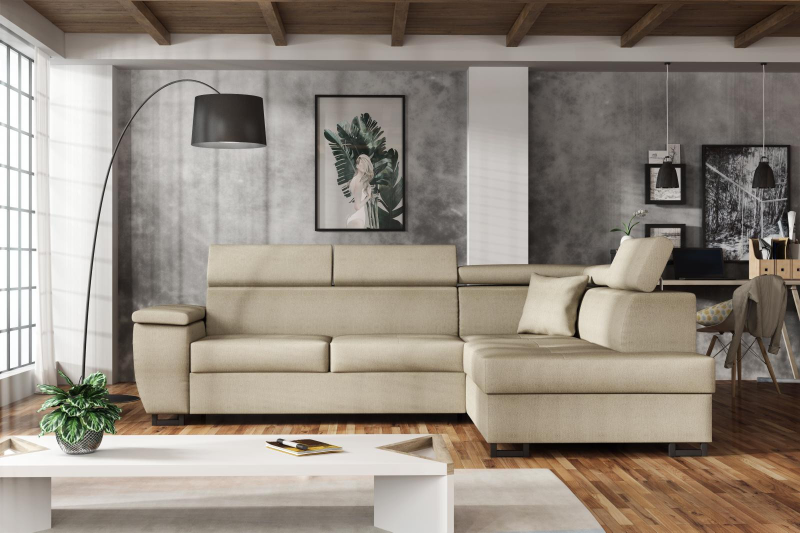 Sedací souprava Wiliam je vyrobena v nadčasovém designu, který se hodí do každého interiéru. Spojuje v sobě 2 důležité prvky, které nesmí chybět žádné sedací soupravě. Jsou to pohodlí a praktičnost. Praktickou stránkou této sedací soupravy je možnost rozložení pro příležitostné přespání návštěvy a nepostradatelný úložný prostor. Výplň sedáků tvoří kvalitní PUR pěna v kombinaci s vlnitými pružinami. Pohodlí při odpočinku, sledování televize, nebo posezení s přáteli zvyšují polohovací opěrky, které si můžete nastavit tak, aby pro vás sezení bylo co nejpohodlnější. Sedací souprava je potažena elegantní látkou a je celočalouněná, takže ji můžete umístit i do prostoru. Nabízíme ji v levém i pravém provedení a v několika barvách. Vyobrazené doplňky a dekorace nejsou v ceně. Vzorek látky, ve které bude sedací souprava dodána, je vyobrazen v doplňkových fotografiích.