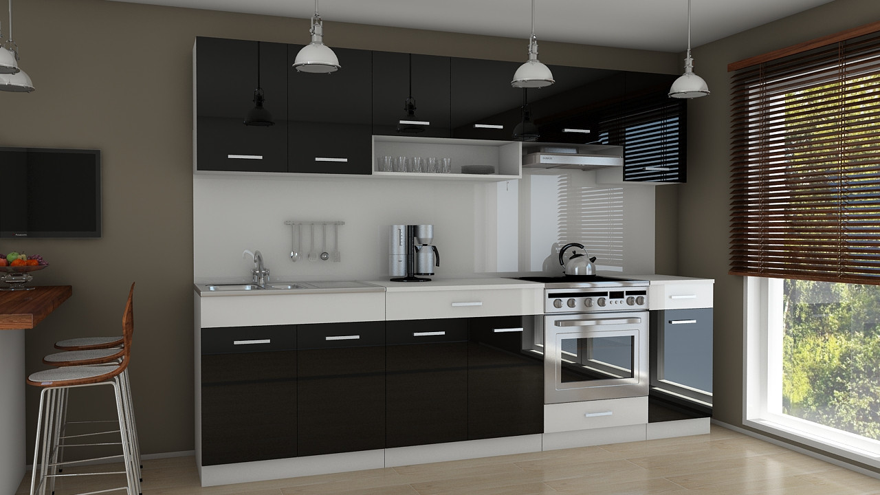 Kuchyňská linka Carrie 260 černý lesk/bílý pruh