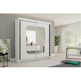 Skříň s posuvnými dveřmi Mario je vyrobena z kvalitního lamina. Dveře skříně jsou osazeny zrcadlem v netradičním tvaru a na bocích jsou ozdobné pásky v černém lesku. Tyto doplňky dodávají skříni originální a elegantní vzhled. Díky svému vnitřnímu uspořádání nabízí dostatek úložného prostoru, posuvné dveře šetří prostor a zrcadlo ho opticky zvětší a prosvětlí. Skříň najde uplatnění v ložnici, dětském nebo studentském pokoji, v předsíni i kanceláři. Nabízíme ji v rozměrech 120 cm, 150 cm,180 cm a 200 cm. Všechny nabízené rozměry jsou dostupné v bílé barvě a dále také v dekoru sonoma. Skříň je dodávána v demontu a součástí je montážní plánek včetně všech potřebných spojovacích prvků. Vyobrazené dekorace nejsou v ceně.