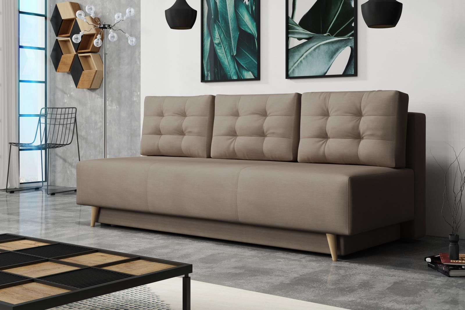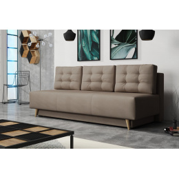 Pohovka Sebastian je elegantním kouskem sedacího nábytku s nádechem RETRO designu a výborně zapadne do každého interiéru. Retro design podtrhují zešikmené dřevěné nohy a látkové knoflíky na opěrných polštářích. Pohovka je rozkládací a samozřejmostí je i nepostradatelný úložný prostor. Jednoduchým rozložením pomocí automatu vznikne dostatečně prostorné lůžko občasnému přespání Vaší návštěvy. Výplň sedáku tvoří pružiny bonell a kvalitní PUR pěna. Pohovka je celočalouněná, takže ji můžete umístit i do prostoru. Výborně se hodí do obývacího pokoje, do pracovny či pokoje pro hosty. Pohovku nabízíme v několika trendy barvách. Vyobrazené doplňky a dekorace nejsou v ceně. Zobrazení barev produktu na fotografii se může nepatrně lišit od skutečnosti.