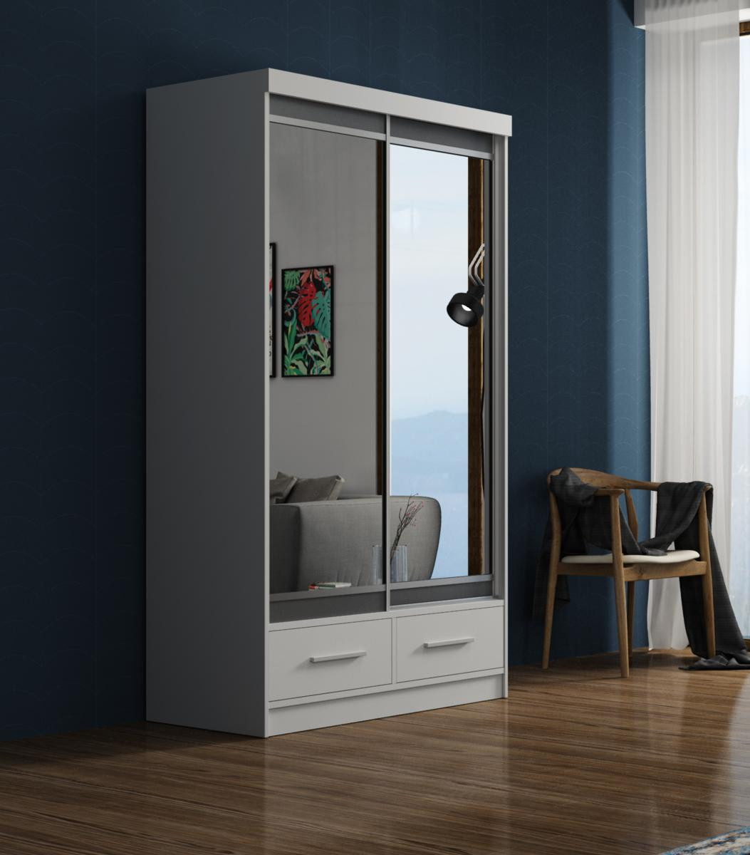 Šatní skříň Margita je vyrobena z lamina. Má posuvné dveře, které šetří prostor a na dveřích skříně jsou zrcadla, které místnost opticky zvětší a prosvětlí. Díky svému vnitřnímu uspořádání (vyobrazeno v doplňkových fotografiích) nabízí skříň dostatek úložného prostoru. Skříň je také vybavena zásuvkami, do kterých můžete uložit drobnosti. Skříň Margo najde uplatnění např. v dětském nebo studentském pokoji, v předsíni, v ložnici i v obývacím pokoji. Nabízíme ji v rozměrech 120 cm, 150 cm, 200 cm a 250 cm. Všechny nabízené rozměry jsou dostupné v černé a bílé barvě a dále také v dekoru sonoma. Skříň je dodávána v demontu a součástí je montážní plánek včetně všech potřebných spojovacích prvků. Vyobrazené doplňky a dekorace nejsou v ceně.