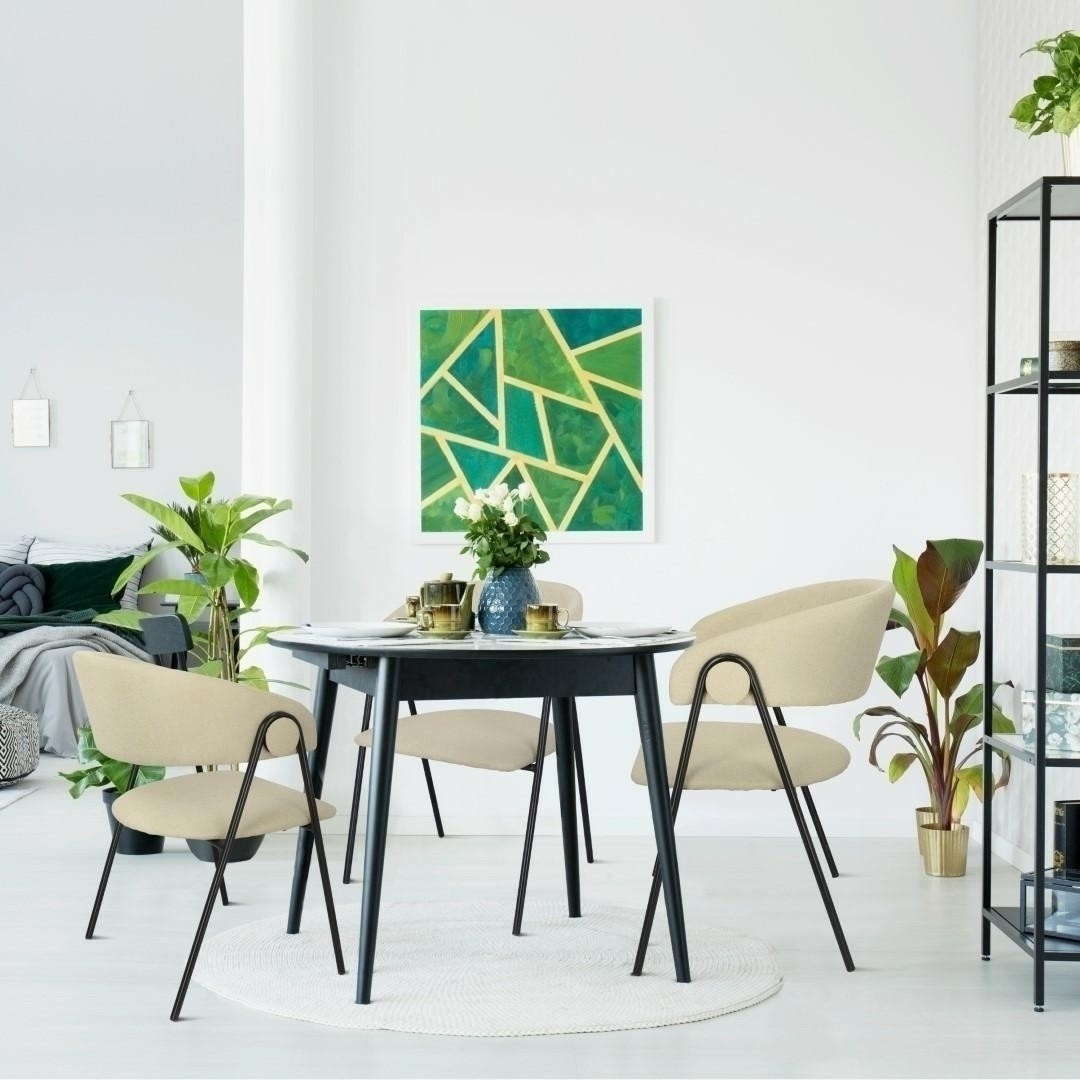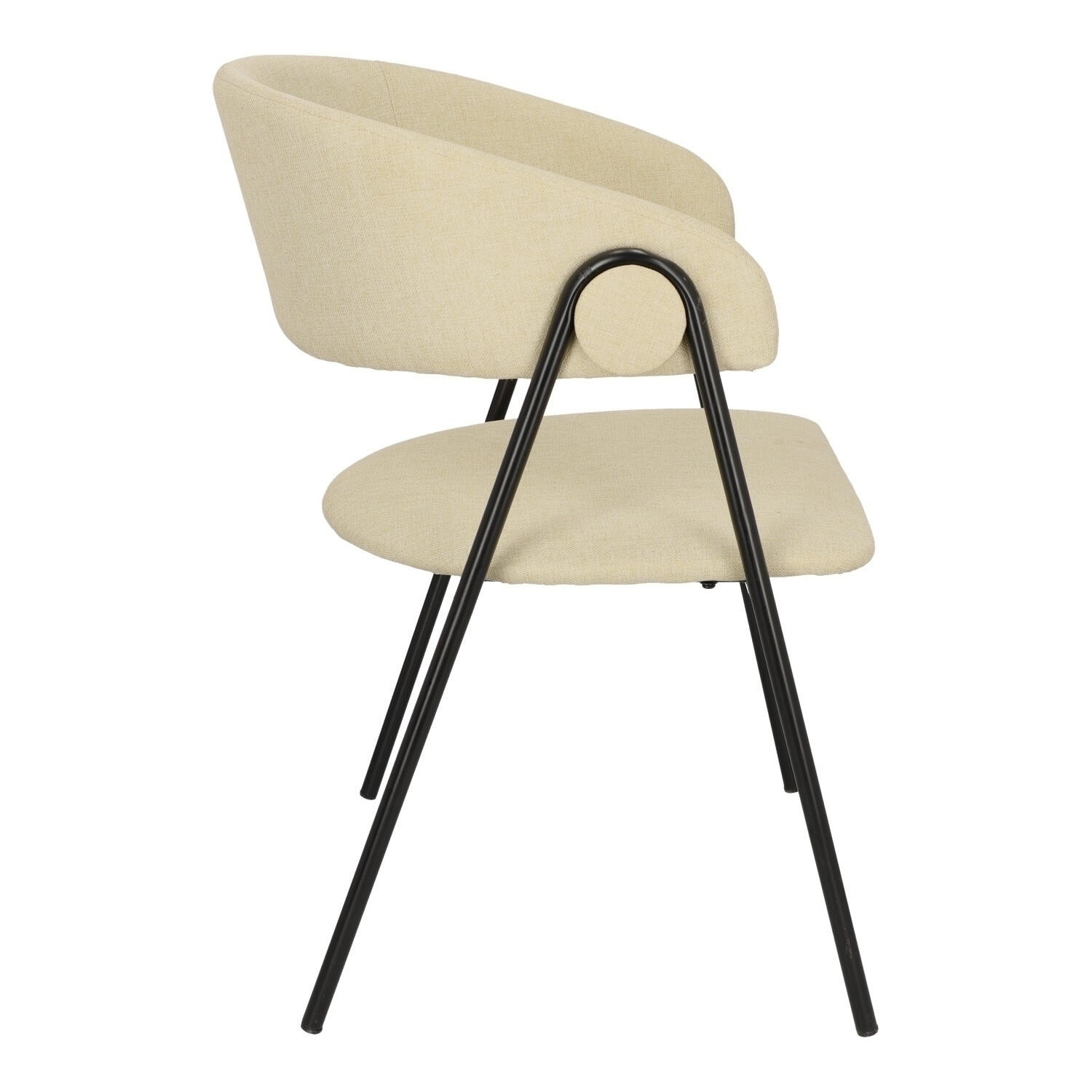 Židle Larisa má čalouněný sedák a opěradlo, které jsou dokončeny béžovou látkou. Tkanina je příjemná na dotek a zajišťuje pohodlí při používání. Kovové nohy židle jsou práškově lakované na černou barvu, což jí dodává pevnost a stabilitu. Půlkruhové opěradlo židle jí dodává jedinečný vzhled, zároveň poskytuje oporu pro záda. Opěradlo a sedák jsou vyplněny čalounickou pěnou, což zajišťuje pohodlí při dlouhém sezení. Pěna se dokonale přizpůsobuje tělu, a zároveň si zachovává svůj původní tvar, poskytujíc optimální podporu. Hloubka sedáku: 50 cm Šířka sedáku: 50 cm Hmotnost židle: 5 kg Max. nosnost: 120 kg Židle vyžaduje montáž Max. 2 ks v kartonu