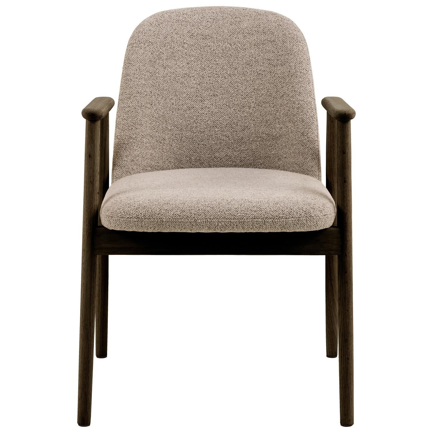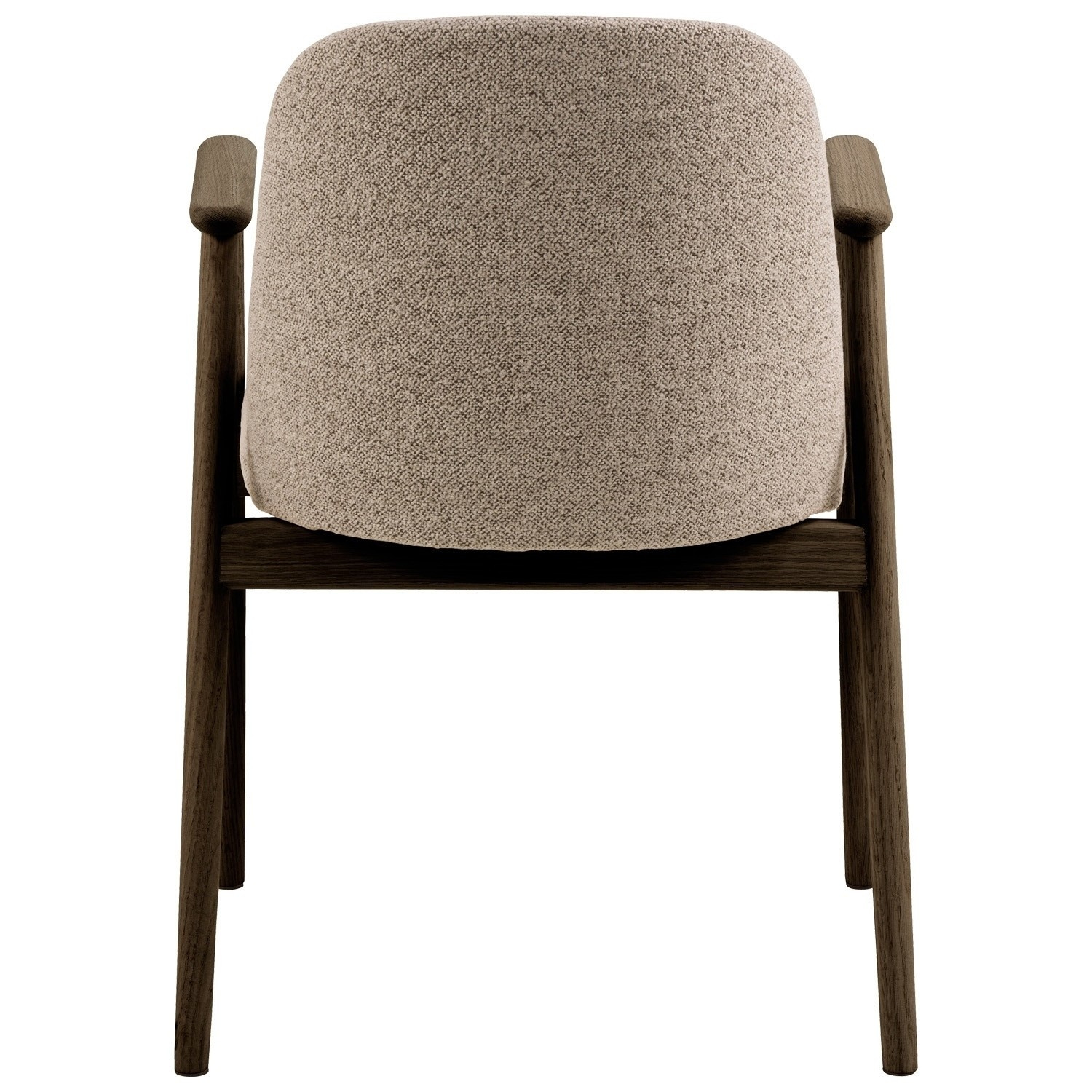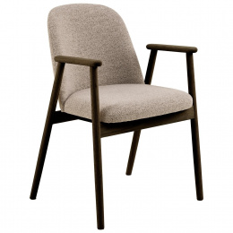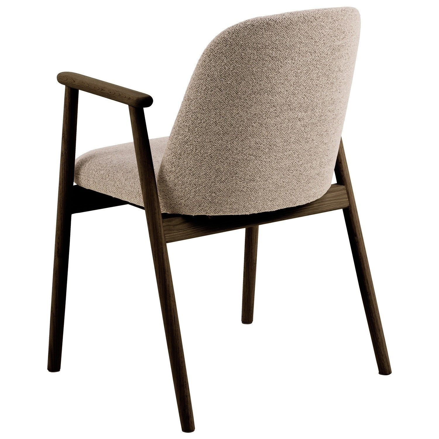 Tato jídelní židle s područkami přináší do jídelny skandinávskou eleganci. Sedák je čalouněný béžovou látkou bouclé s luxusní, kadeřavou strukturou, která zajišťuje moderní a zároveň elegantní vzhled. Podporovaná na štíhlých, kouřových, lakovaných nohách má židle sochařský charakter a dub zdůrazňuje skandinávskou eleganci. Židle do jídelny Leo s područkami, látka Monza béžová 60 FR, základna dub lakovaný matný Výška opěradla 37 cm Šířka sedáku 48 cm Hloubka sedáku 44 cm Výška područky od podlahy 64 cm Šířka područky 5,5 cm Hloubka područky 32 cm Výška područky 17 cm
