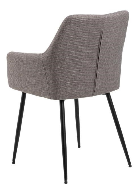 Židle do jídelny Lizzy s područkami potažená látkou Basel brown 34 je vyrobena z černé matné práškově lakované základny a má zip na zadní straně čalouněného opěradla. Charakterizované nadčasovou elegancí, klasické křeslo s područkami je čalouněné silnou šedo-hnědou látkou s dvoubarevným efektem. Dodává to projektu pěkný, uspořádaný vzhled. Doplněné štíhlými nohami z černé oceli, židle získává univerzální vzhled, který se hodí do různých stylů jídelen. Hlavní vlastnosti: Jídelní židle s područkami s elegantním a univerzálním vzhledem, čalouněná strukturovanou látkou v šedo-hnědé barvě s dvoubarevným efektem. Max. zatížení 110 kg. Židle vyžaduje montáž. Hmotnost židle: 5,3 kg. Šířka sedáku: 42,5 cm Hloubka sedáku: 44 cm Výška opěradla: 39 cm Výška područek od sedáku: 17 cm. Hloubka područek: 30 cm Max. 2 ks v kartonu Karton: 60x60x52 cm