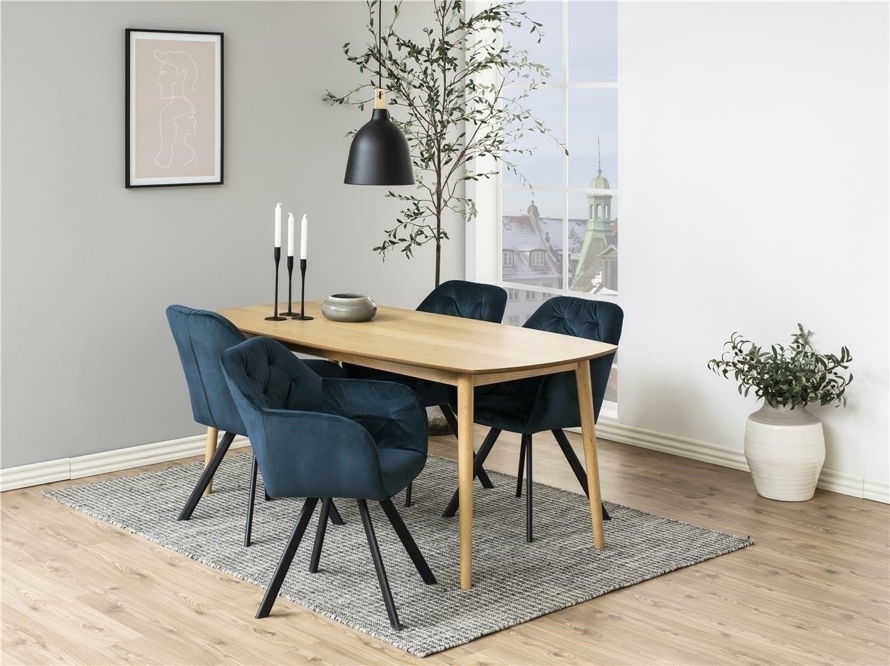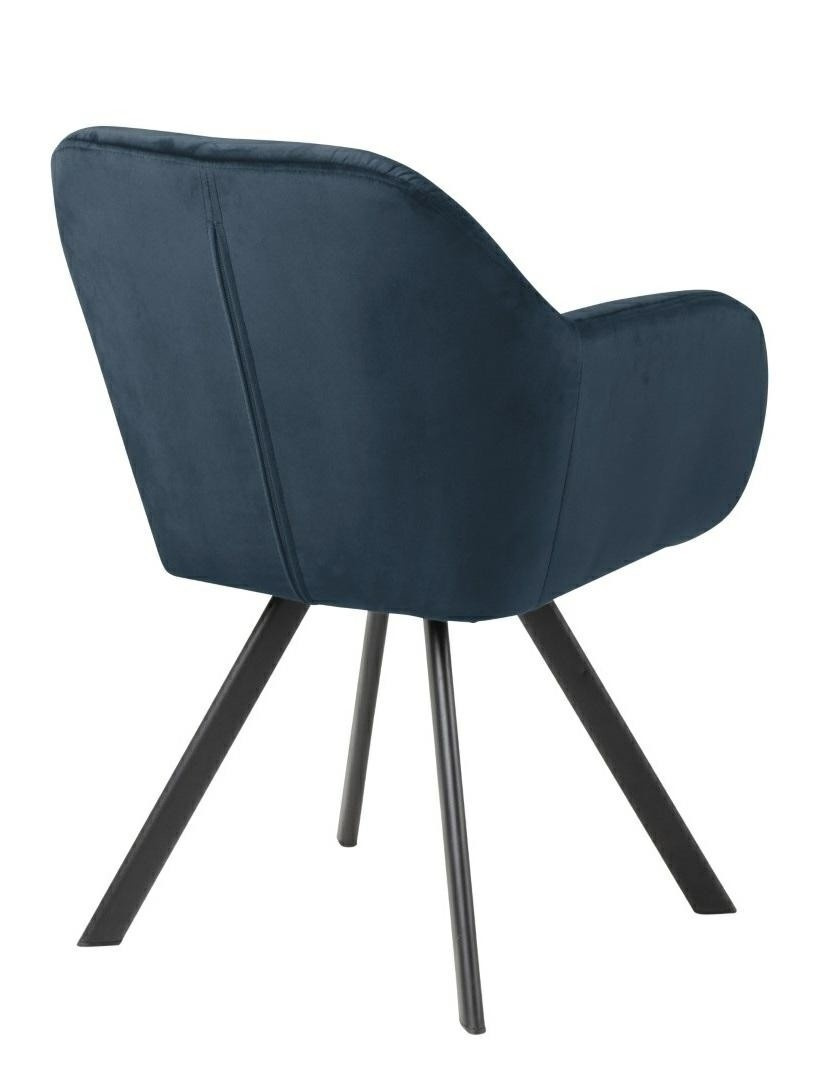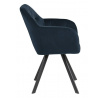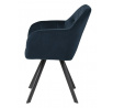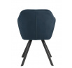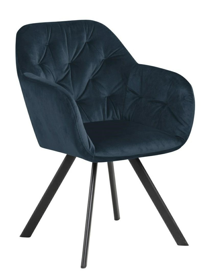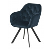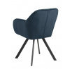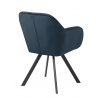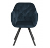 Židle Lola je čalouněná židle s měkkou sametovou látkou VIC fabric navy blue 66. Židle má dokonale tvarované područky, které tvoří se sedákem a opěradlem jednotný celek. Opěradlo židle bylo ozdobeno prošíváním, které mu dodává styl. Základem židle jsou kovové nohy lakované černou práškovou barvou. Zajímavý tvar základny dodává celku lehkost. Židle má funkci "auto-return", která zajišťuje, že po skončení používání se pohyblivé sedadlo vrátí do správné polohy. Maximální zatížení: 120 kg. Hmotnost židle: 11,4 kg Rozměry kartonu: 61 cm x 50,5 cm x 58 cm Maximální množství ks. v kartonu: 1 Výška sedáku: 47,5 cm Šířka sedáku: 40 cm Hloubka sedáku: 41 cm Výška područek: 22 cm