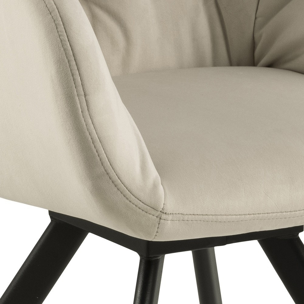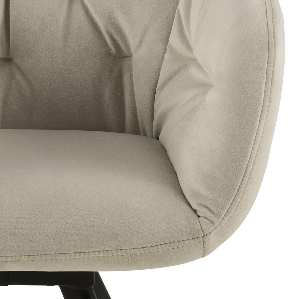 Židle Lola je čalouněná židle s měkkou sametovou látkou VIC VIC fabric sand A80. Židle má dokonale tvarované područky, které tvoří se sedákem a opěradlem jednotný celek. Opěradlo židle bylo ozdobeno prošíváním, které mu dodává styl. Základem židle jsou kovové nohy lakované černou práškovou barvou. Zajímavý tvar základny dodává celku lehkost. Maximální zatížení: 120 kg. Hmotnost židle: 9,4 kg Rozměry kartonu: 61 cm x 50,5 cm x 58 cm Maximální množství ks. v kartonu: 1 Výška sedáku: 47,5 cm Šířka sedáku: 40 cm Hloubka sedáku: 41 cm Výška područek: 22 cm