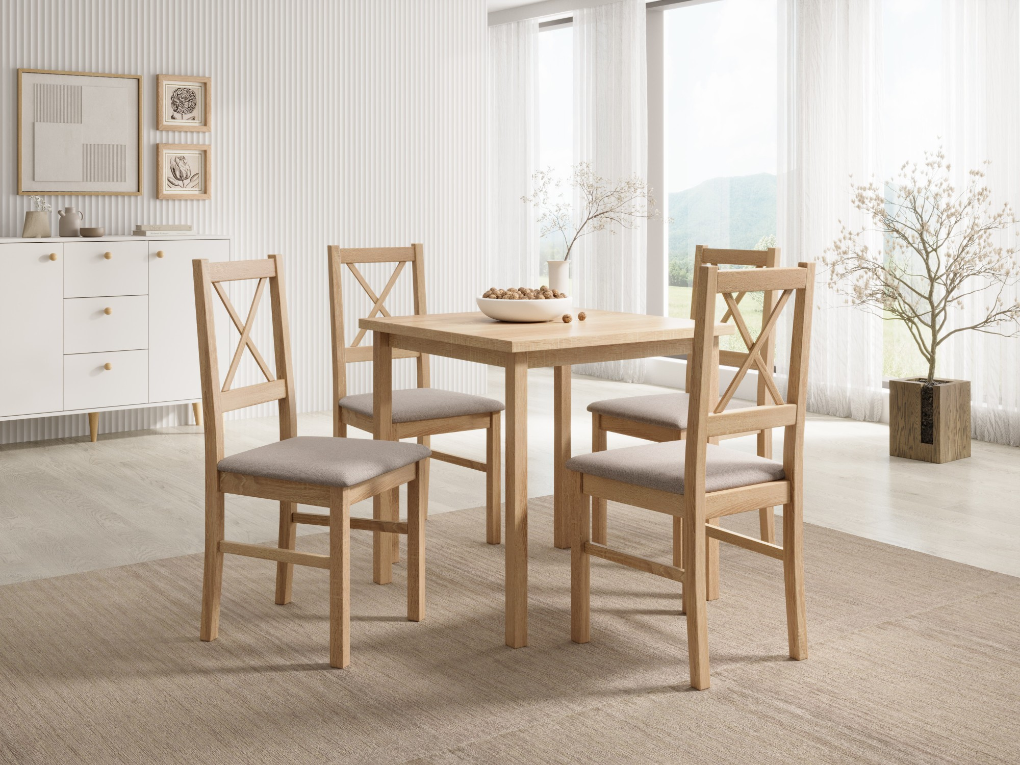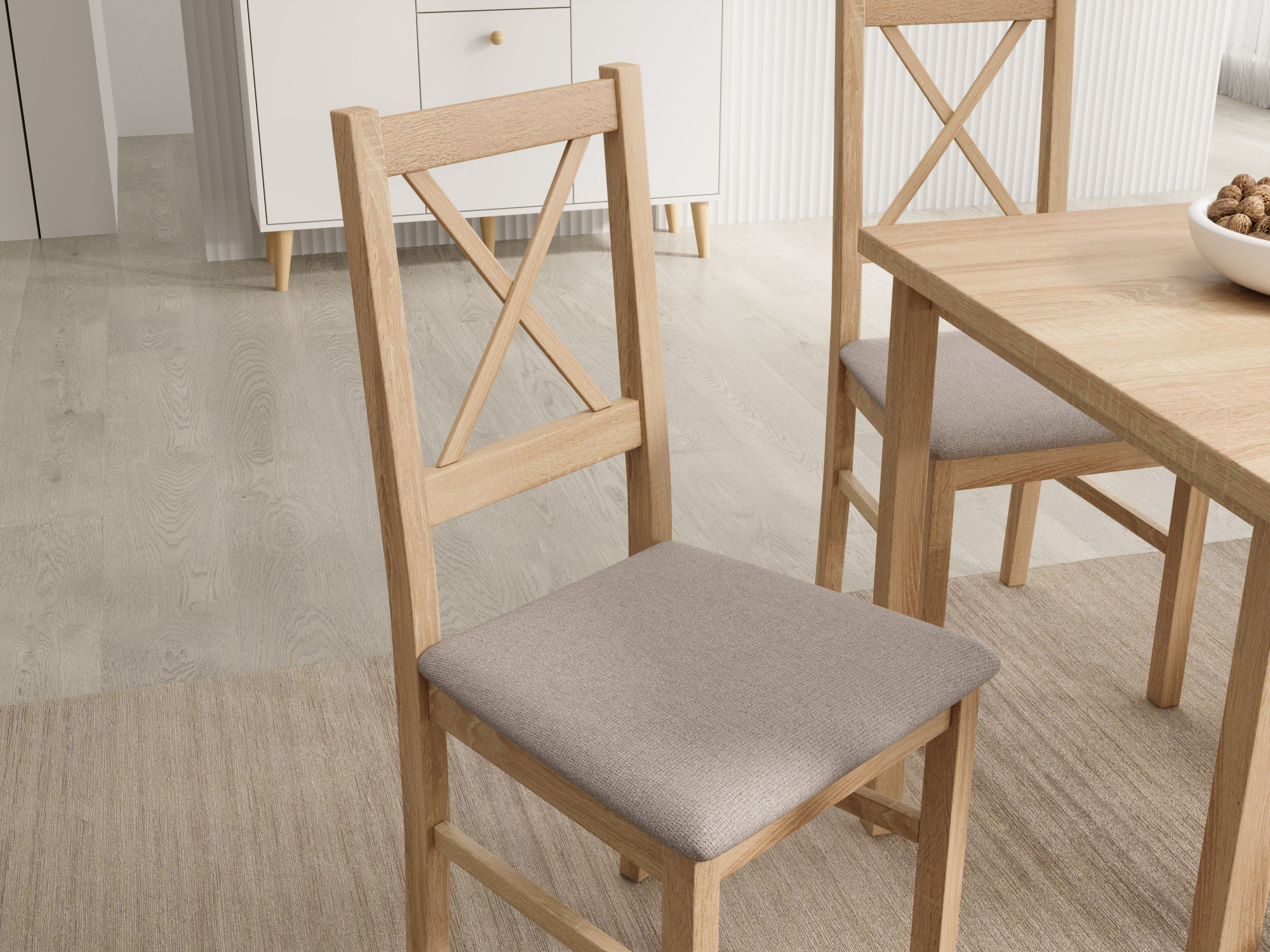 Židle Milo X je kombinací jednoduchosti a kouzla rustikálního stylu s moderním přístupem k formě a pohodlí. Charakteristická křížová opěrka mu dodává lehkost a vizuální svěžest, díky čemuž se stává výjimečným prvkem každého jídelního nebo kuchyňského prostoru. Čalouněné sedadlo zajišťuje pohodlí i při delším používání a stabilní dřevěná konstrukce se promítá do pevnosti a trvanlivosti na léta. Milo X se ideálně hodí k interiérům inspirovaným skandinávským, klasickým nebo provensálským stylem, přidávajíc jim útulnost a přirozený charakter. Tato židle, která jemně spojuje estetiku s funkčností, se dokonale hodí do každodenních potřeb domácího prostoru.