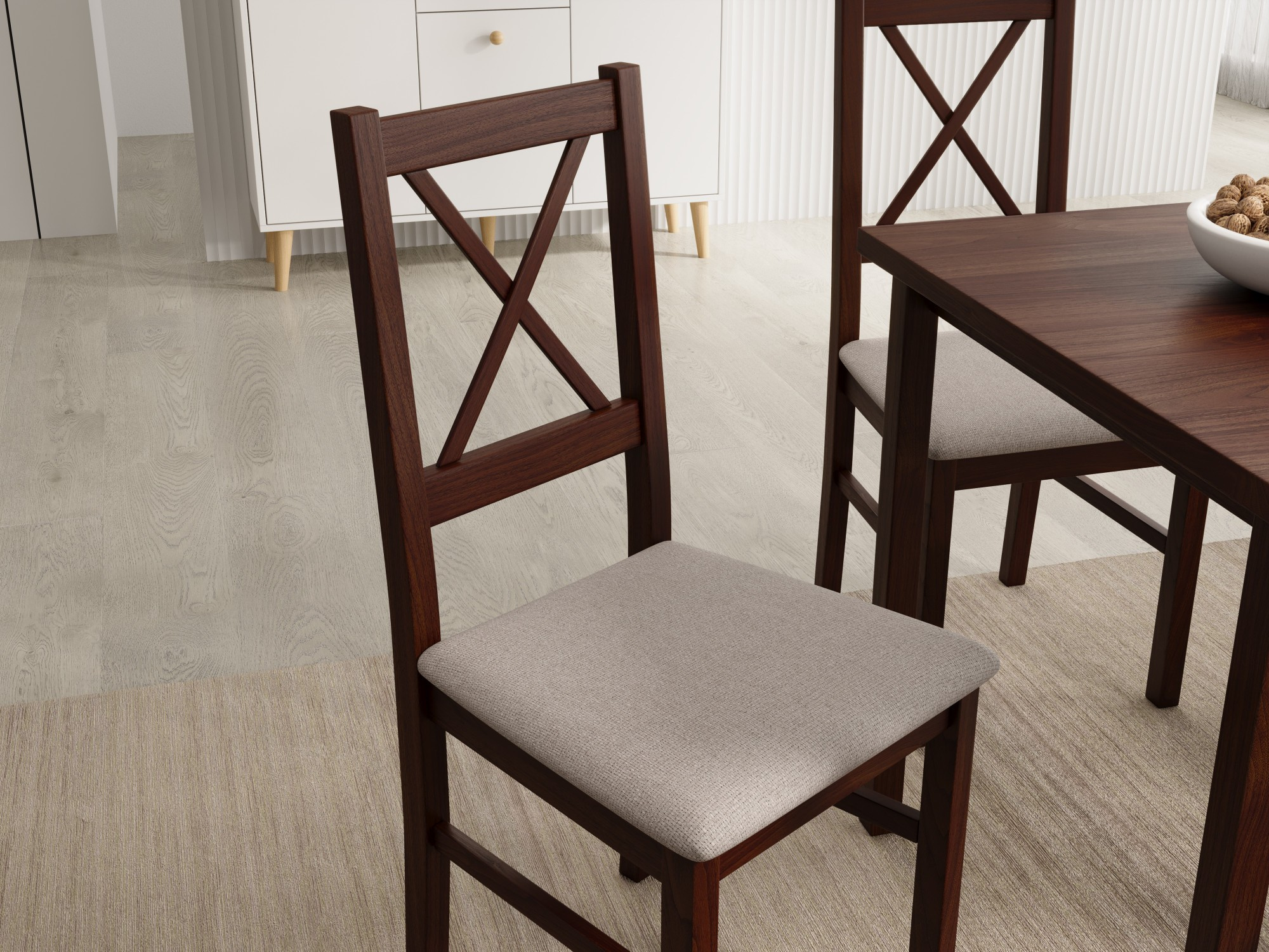 Židle Milo X je kombinací jednoduchosti a kouzla rustikálního stylu s moderním přístupem k formě a pohodlí. Charakteristická křížová opěrka mu dodává lehkost a vizuální svěžest, díky čemuž se stává výjimečným prvkem každého jídelního nebo kuchyňského prostoru. Čalouněné sedadlo zajišťuje pohodlí i při delším používání a stabilní dřevěná konstrukce se promítá do pevnosti a trvanlivosti na léta. Milo X se ideálně hodí k interiérům inspirovaným skandinávským, klasickým nebo provensálským stylem, přidávajíc jim útulnost a přirozený charakter. Tato židle, která jemně spojuje estetiku s funkčností, se dokonale hodí do každodenních potřeb domácího prostoru.