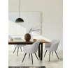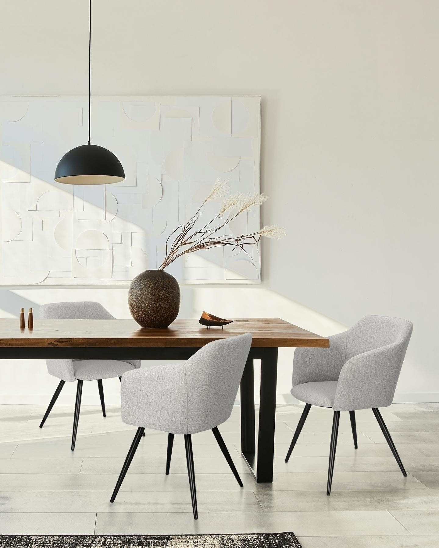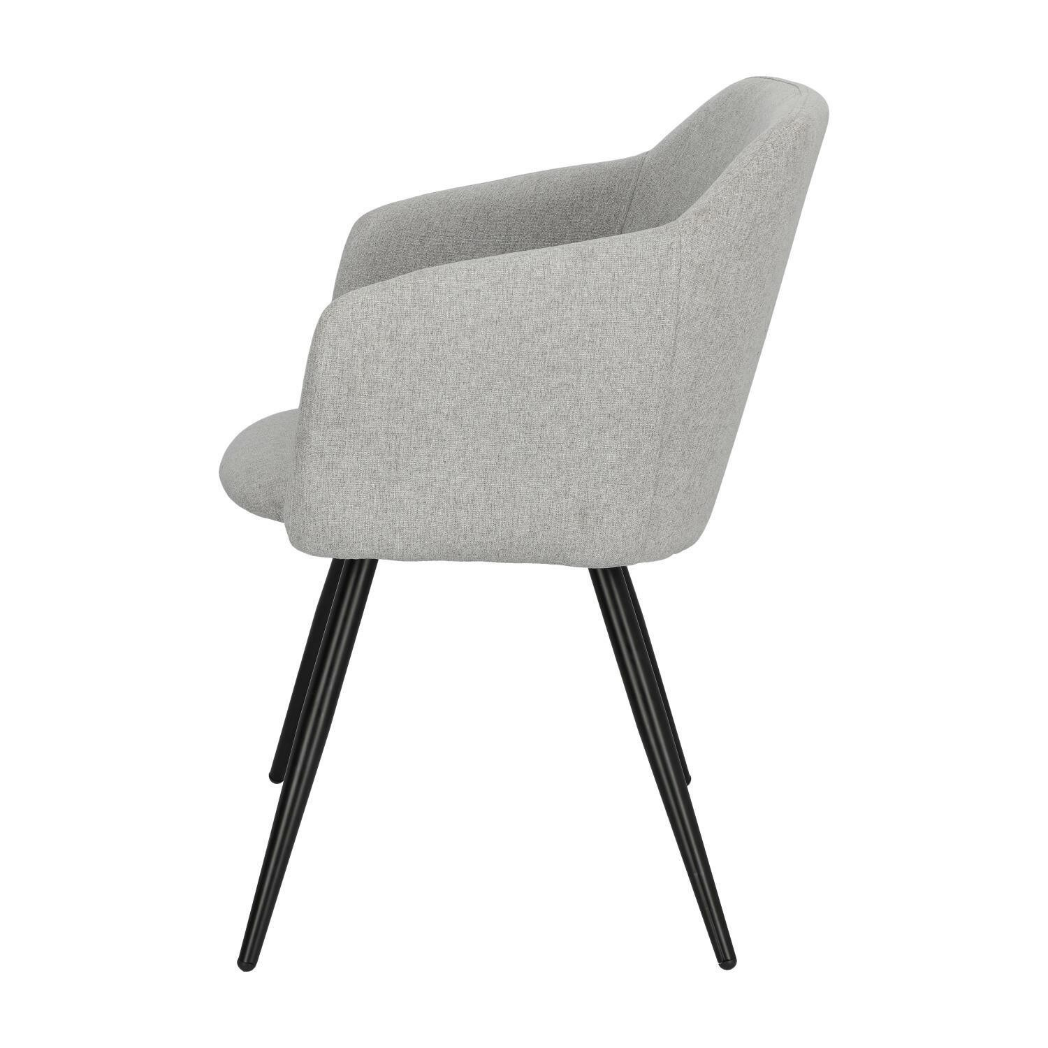 Elegantní židle Molto je kombinací módní látky s odolnou kovovou základnou. Sedák v šedé barvě se dokonale hodí k černé matné základně. Kovové nohy se snadno čistí a jsou odolné proti znečištění, zatímco sedák má matnou povrchovou úpravu. Produkt byl navržen ve stylu Glamour. Židle je lehká, váha se pohybuje okolo 5-6 kg, její maximální zatížení je 120 kg. Rozměry: Výška sedáku: 46 cm Šířka sedáku: 42 cm Výška područek: 70 cm Hloubka sedáku: 46 cm Tloušťka nohou: 3,5 cm