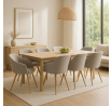 Elegantní židle Molto je kombinací módní látky s odolnou kovovou základnou. Sedák v šedé barvě se dokonale hodí k černé matné základně. Kovové nohy se snadno čistí a jsou odolné proti znečištění, zatímco sedák má matnou povrchovou úpravu. Produkt byl navržen ve stylu Glamour. Židle je lehká, váha se pohybuje okolo 5-6 kg, její maximální zatížení je 120 kg. Rozměry: Výška sedáku: 46 cm Šířka sedáku: 42 cm Výška područek: 70 cm Hloubka sedáku: 46 cm Tloušťka nohou: 3,5 cm