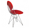 Hlavní a nejvíce nápadnou vlastností této židle je její provedení z chromovaného drátu, který díky tvarování do ergonomického tvaru a vysoké hustotě propletení zajišťuje vysoký komfort sedící osobě. O obrovském množství práce, kterou je třeba vložit do výroby židle, svědčí fakt, že samotný sedák má přes 320 bodových svárů. Pro zvýšení komfortu uživatele je židle vybavena polštáři na sedáku a opěradle. Tyto polštáře lze však snadno sundat. Parametry: Výška sedáku: 45 cm Šířka sedáku: 46 cm Hloubka: 40 cm Tloušťka nohou: 1 cm Rozměry kartonu: 55x55x49 Počet kusů v kartonu: 2 Hmotnost: 14 kg