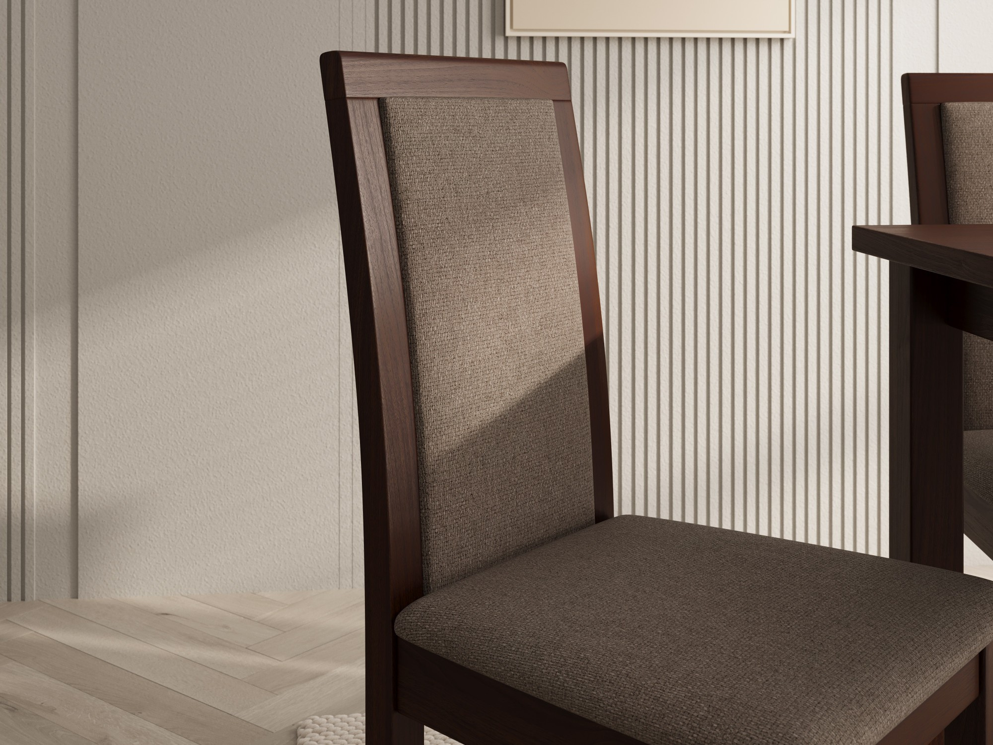 Židle Nola IV je harmonickým spojením stylu, komfortu a solidního provedení. Jeho klasická silueta byla obohacena o moderní detaily, které zajišťují, že se dokonale hodí jak do tradičních, tak i do současných aranžmá jídelny, obývacího pokoje či kanceláře. Vyznačuje se pečlivě tvarovanou opěrkou, která podporuje záda a zajišťuje pohodlí i při dlouhém sezení. Měkké sedadlo pokryté příjemnou na dotek látkou způsobuje, že každé jídlo nebo setkání s blízkými se stává ještě příjemnějším. Solidní konstrukce vyrobená z odolných materiálů zajišťuje stabilitu a dlouhověkost nábytku. Jemné detaily provedení mu dodávají eleganci a univerzální tvar z něj činí vynikající volbu pro každý interiér.