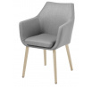 Židle Nora odkazuje na nejnovější trendy v interiérovém designu. Sedák čalouněný látkou Corsica fabric light grey v módní barvě se efektně kombinuje se základnou vyrobenou z běleného dubového dřeva. Nohy židle jsou zespodu chráněny speciálními nástavci. Výška sedáku: 49 cm Šířka sedáku: 39 cm Hloubka sedáku: 41 cm Výška područek: 22 cm Rozměry: 58x58x83 cm Hmotnost židle: 8 kg