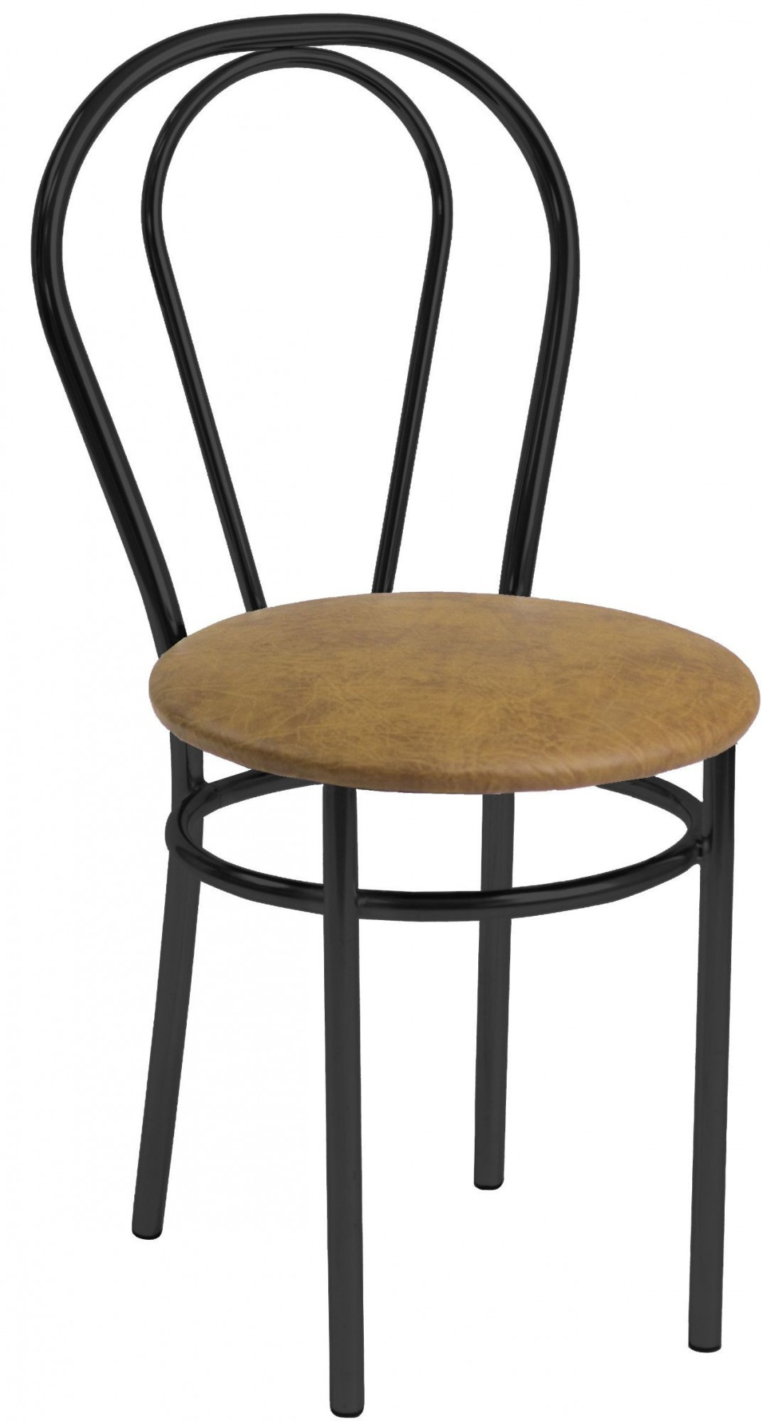 Rozměry: - průměr sedáku: 42 cm - výška sedáku: 48 cm - celková výška: 86 cm Materiál - čalounění: ekokůže - konstrukce: kov lakovaný práškovou barvou Barva: - sedák: ořech - konstrukce: černá