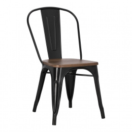 Židle Paris Wood je designové spojení surového dřeva a lakovaného kovu. Doplněním celku bude deska, vyrobená z borovicového dřeva v ořechovém odstínu. Lakovaná povrchová úprava dřevěného sedáku je hladká a snadno se udržuje v čistotě. Lak na povrchu ořechového stolu zvýrazňuje vlastnosti dřeva. Tato kombinace dodává celé kompozici chuť a zajišťuje, že nábytek získává jedinečný vzhled. Celý projekt je jedinečná užitková forma. Židle Paris Wood je k dispozici v několika barevných variantách.Židle má certifikáty en 581-1:2017 a en 581-2:2016. Vyžaduje montáž.