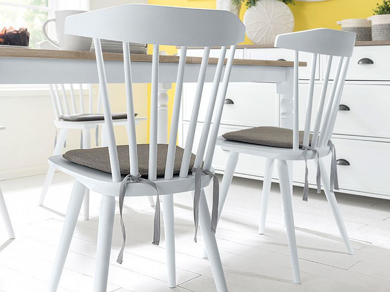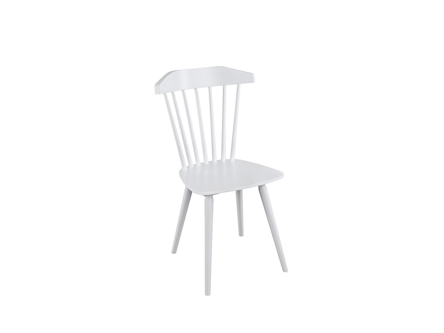 Jídelní židle je z bukového dřeva mořeného na bílo. Nohy kvůli stabilitě a z estetického hlediska jsou zešikmené.