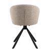 Originální zakřivení sedáku a štíhlá černá kovová základna dodávají židli jedinečný vzhled. Béžové čalounění z měkké tkaniny bouclé s kroucenou strukturou dodává židli výjimečný vzhled. Jeho podstatnou vlastností je také otočná základna zajišťující neuvěřitelné pohodlí. Hlavní vlastnosti: Ergonomicky tvarované sedadlo Čalouněné béžovou látkou bouclé s kroucenou strukturou Jemné prošívání na 3 místech Štíhlá černá kovová otočná základna pro kontrast Dánský design chráněný výhradně pro Actonu Certifikát FSC Počet kartonů: 1 Rozměry kartonů: 66x57x50cm Hmotnost kartonů: 10kg Šířka sedadla: 46cm Hloubka sedadla: 43cm